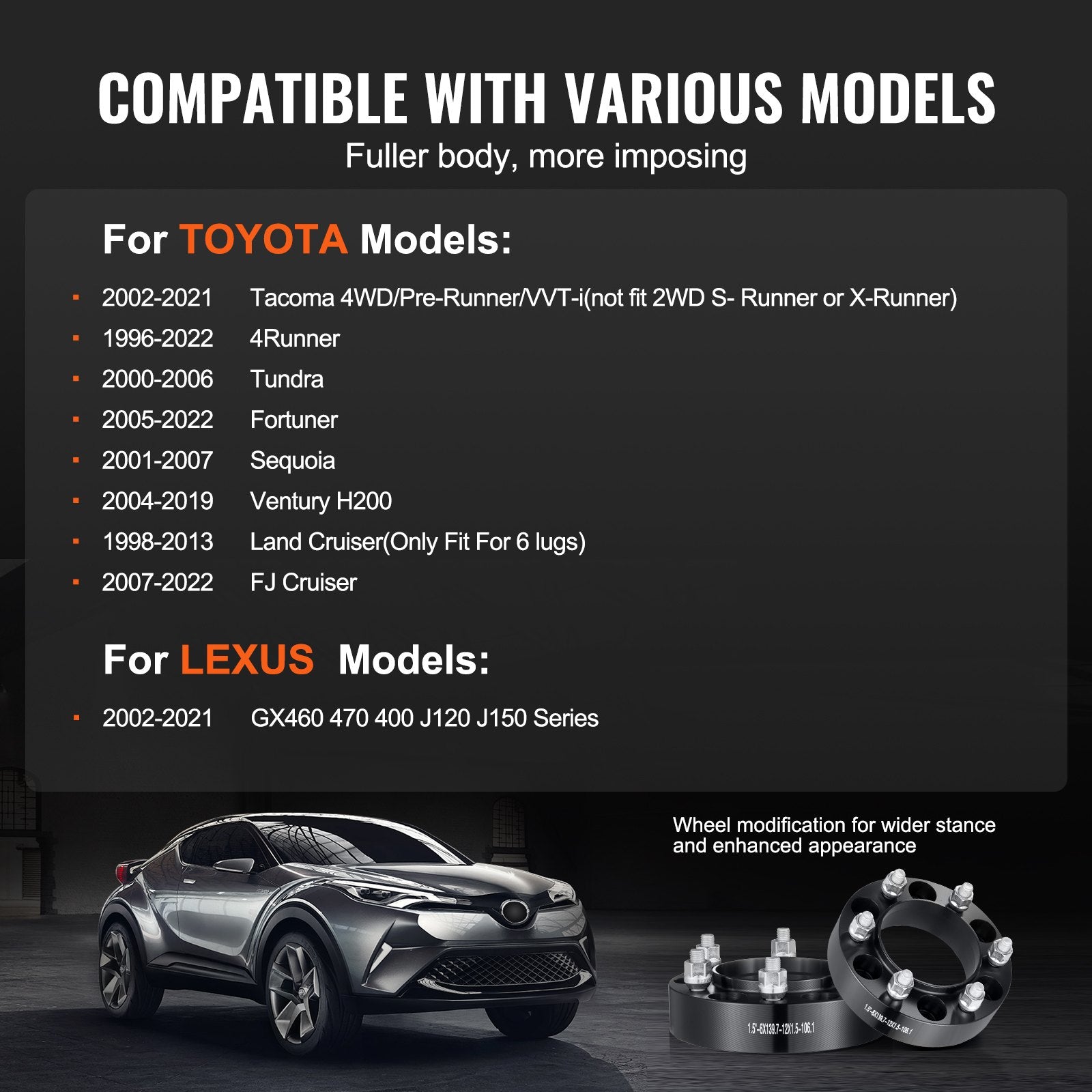 Upgrade your vehicle's handling and stance with the VEVOR 1.5" Wheel Spacers. Designed for 6x5.5" bolt patterns, these forged aluminum spacers enhance stability and provide extra clearance for larger tires and custom wheels. Made from high-strength aluminum alloy with Grade 10.9 pre-installed bolts, these spacers deliver outstanding durability and corrosion resistance. Precision-machined for a secure fit, they're ideal for off-road and performance applications. A perfect blend of strength and functionality in a sleek black finish.