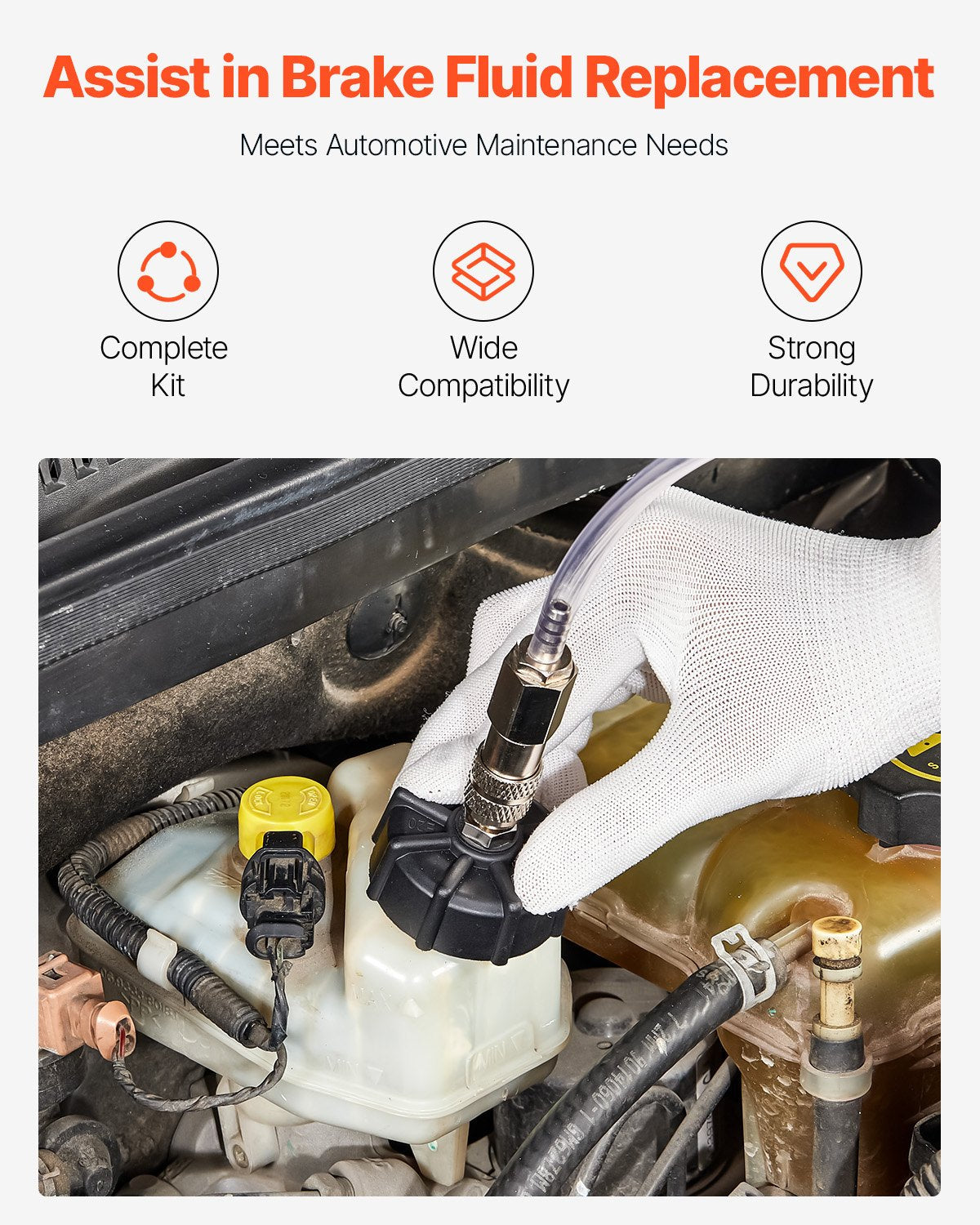 The VEVOR 12 Pcs Brake Master Bleeder Kit is the perfect tool for efficient brake fluid replacement and bleeding in most vehicles. This comprehensive set includes a variety of adapters designed for wide compatibility, allowing you to easily connect to the brake system. Made from durable nylon and iron materials, the kit ensures strong seals for leak-free operation. With its user-friendly design, the kit is easy to store and use, making it an essential tool for both professionals and DIY enthusiasts.