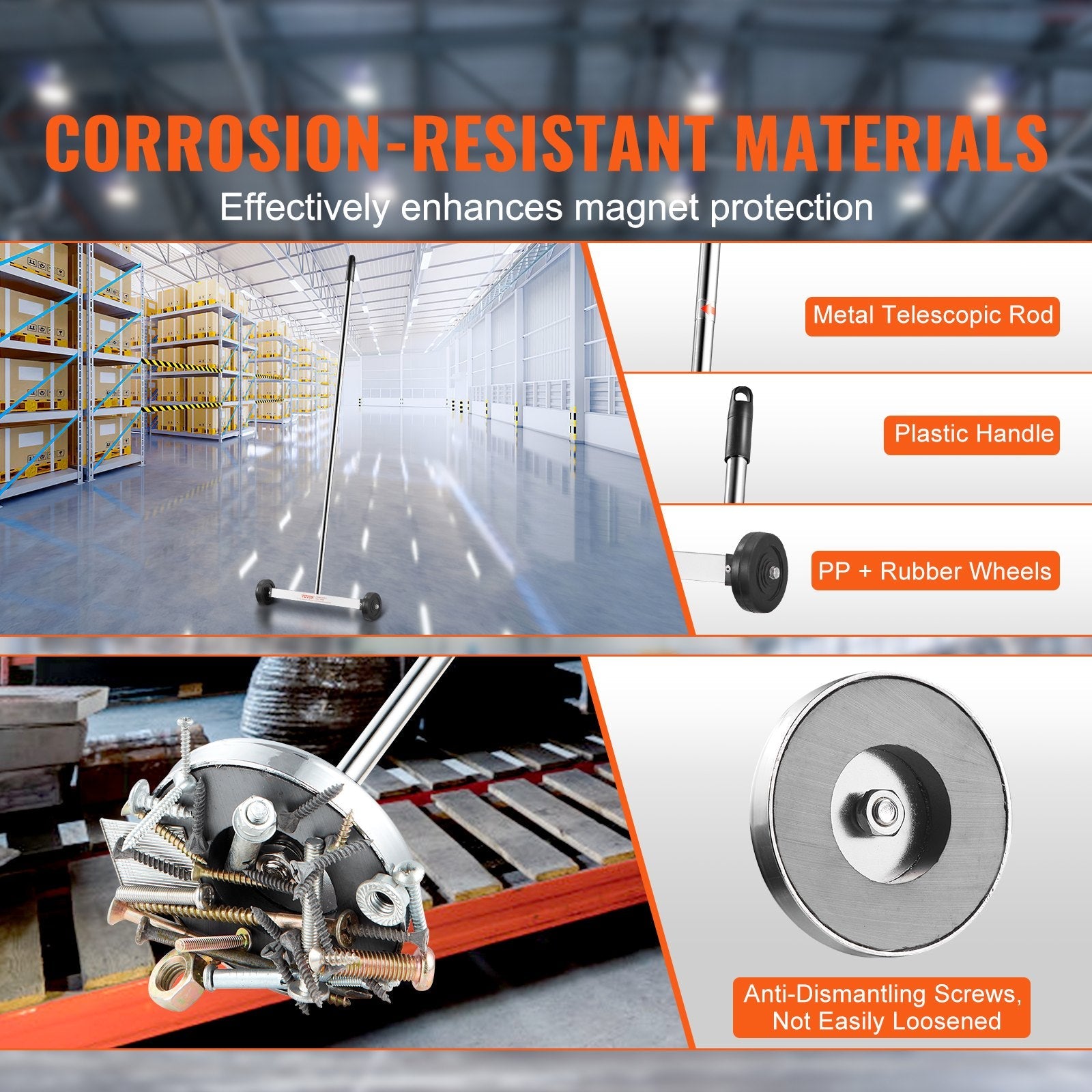 Keep your workspace free of metal debris with the VEVOR 15-Inch Magnetic Sweeper with Wheels. Perfect for workshops, driveways, and job sites, this compact yet powerful tool features dual magnetic heads for precision cleaning. With a telescoping handle, easy-rolling wheels, and a lightweight frame, it provides efficient and ergonomic cleanup of screws, nails, and metal fragments. Built with rugged materials, it’s a reliable solution for both indoor and outdoor use.