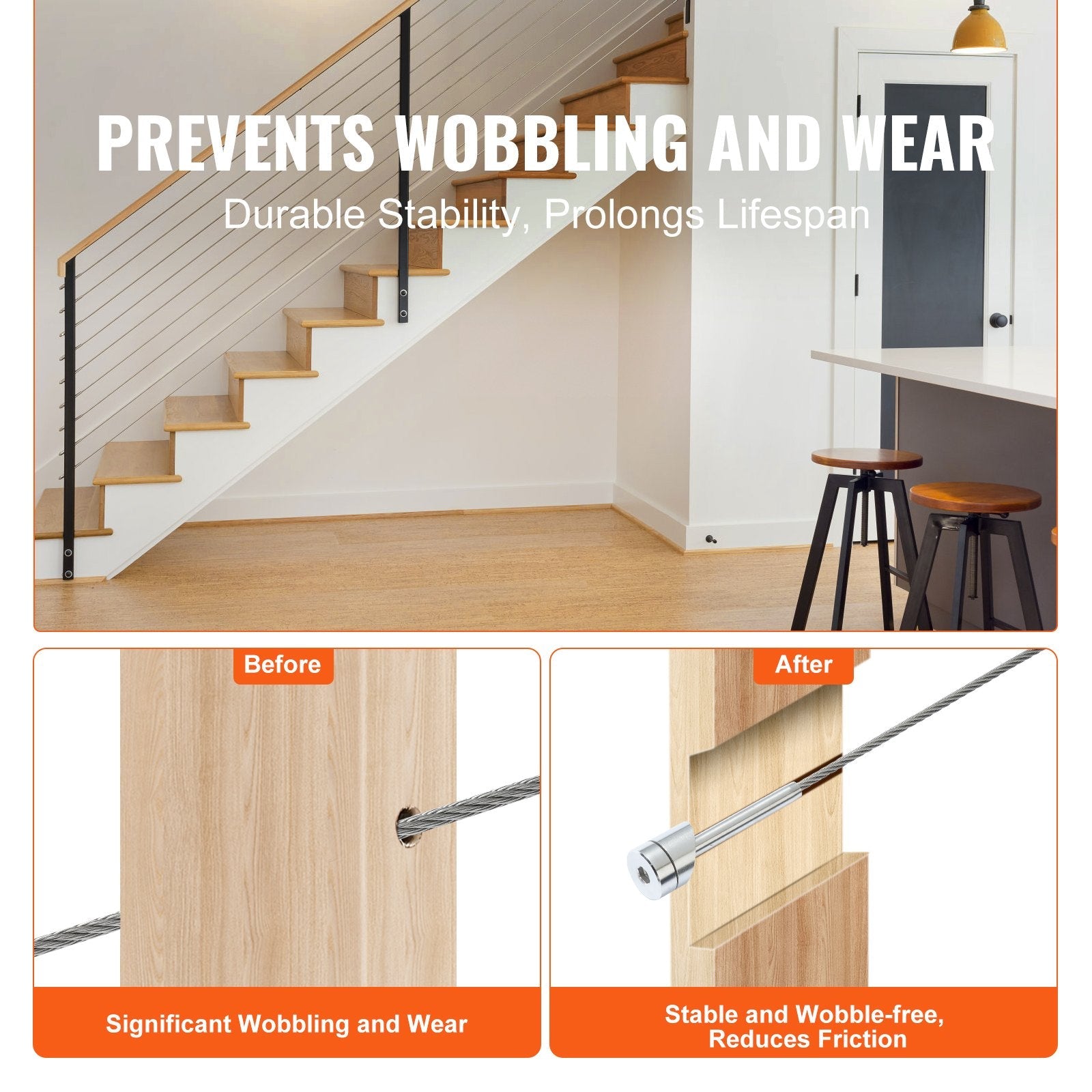 Upgrade your cable railing system with the VEVOR 20-Pack Cable Railing Kit, designed to enhance both the safety and aesthetics of your outdoor space. This kit includes high-quality T316 stainless steel cable sleeves and black invisible swage tensioners, providing a secure and stylish solution for your 1/8" and 3/16" wire ropes. The protective sleeves safeguard your cables, ensuring long-lasting durability and a clean look. With easy installation and the added benefit of 30-degree angled washers, this kit is ideal for use on staircase railings at various angles (25°, 30°, 35°, and 40°). Perfect for residential and commercial projects, this versatile kit supports a variety of installations.