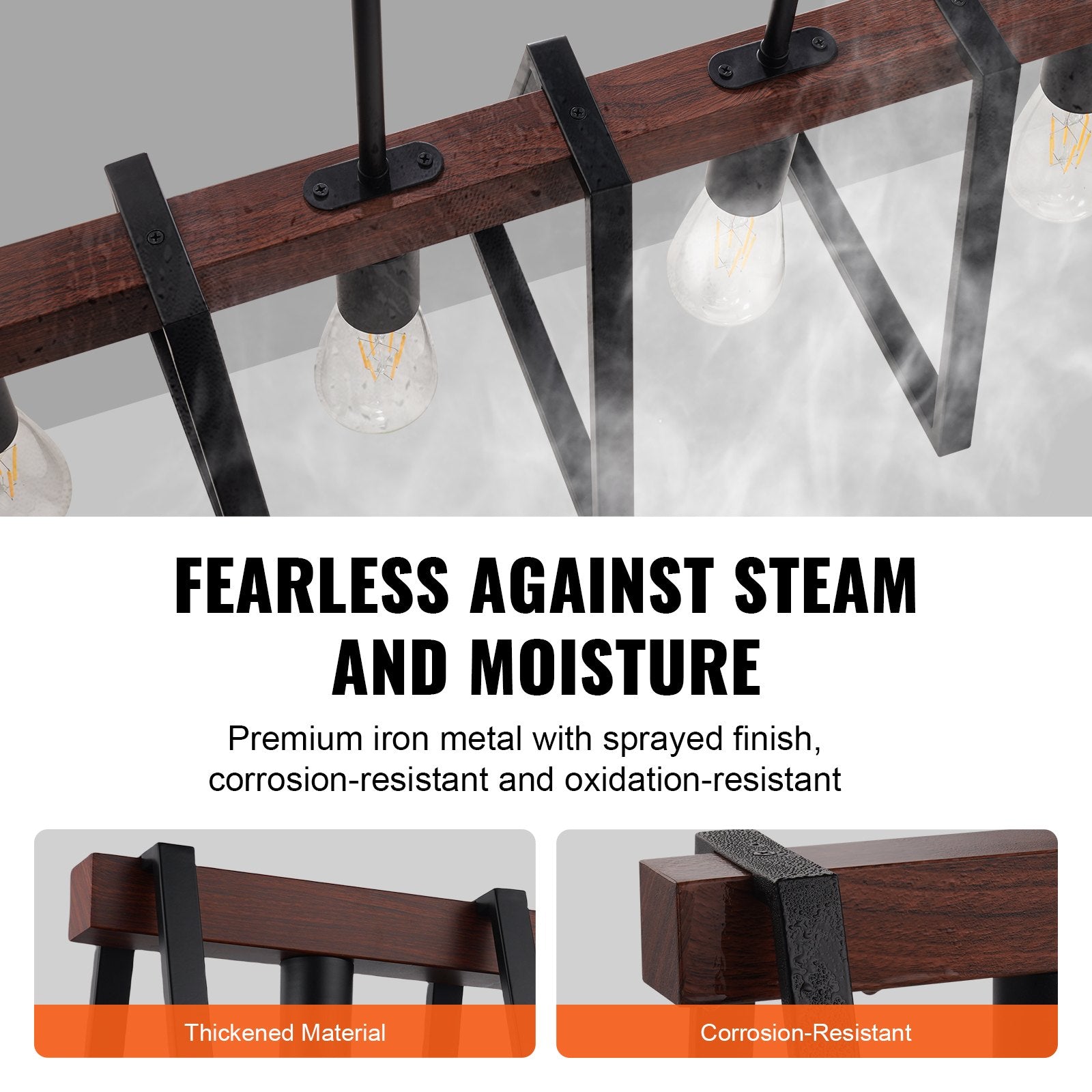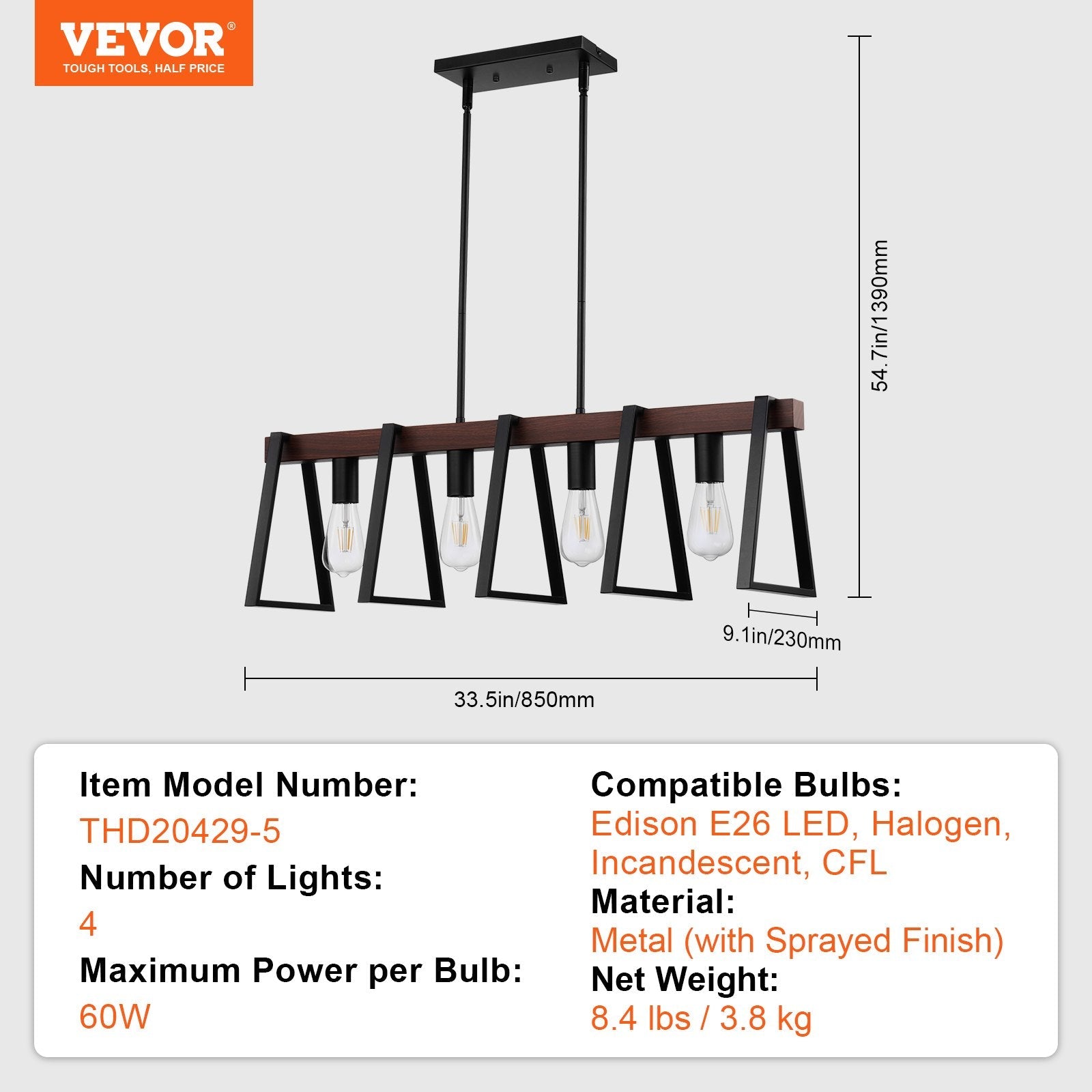Add a touch of vintage charm to your space with the VEVOR 4-Light Kitchen Island Pendant Light. Featuring a retro-industrial design, this fixture blends form and function with four E26-compatible sockets and a durable metal frame. The sprayed finish and excellent heat dissipation ensure lasting performance, while the adjustable design allows you to customize height for various settings. Ideal for kitchens, dining areas, or bars, this pendant light provides ample illumination with a stylish edge.