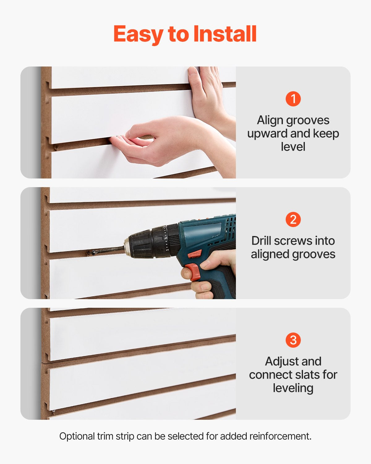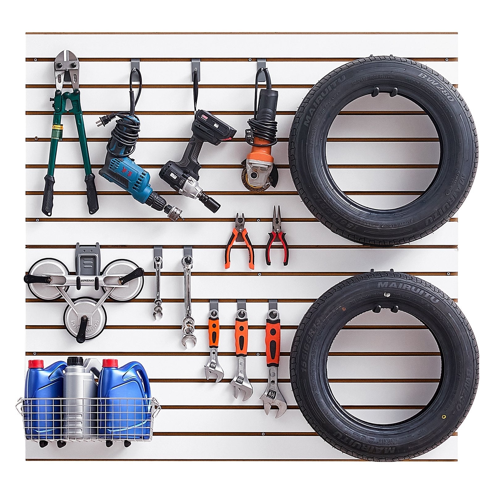 The VEVOR 4 x 4 ft Slat Wall Paneling is a stylish and functional storage solution for your garage, workshop, or home organization. Made from durable MDF, this white slatwall paneling offers powerful functionality with a modular design that can be customized to suit your needs. With a strong load capacity of 25 lbs (11.3 kg), it provides ample support for hanging tools, equipment, or decor. The elegant white finish complements various interiors while offering flexible storage options. Easy to use and install, these panels are perfect for maximizing space and keeping your environment neat and organized.