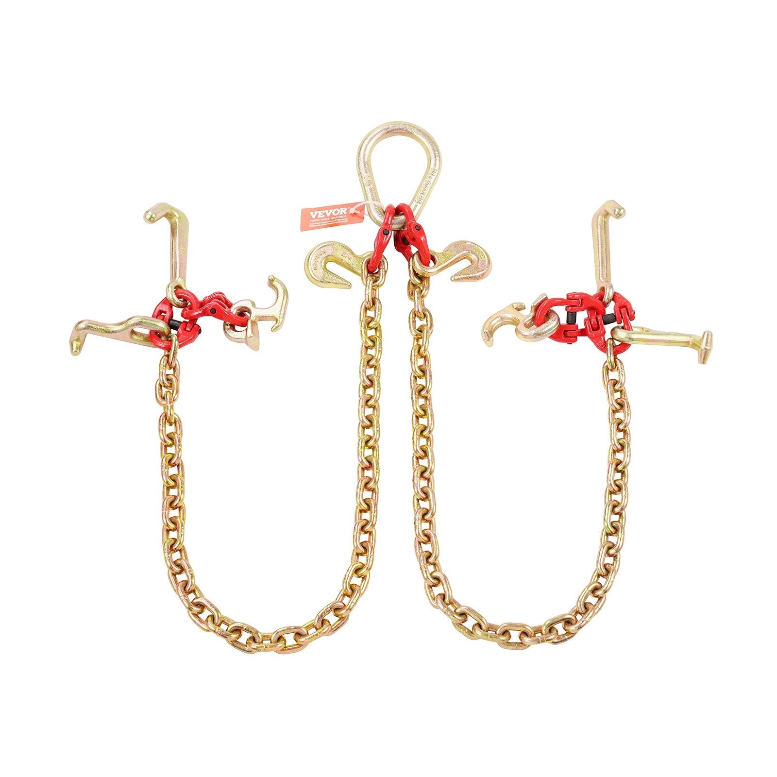 VEVOR 5/16" x 3' G80 Tow Chain V-Chain Bridle RTJ & Grab Hooks Wrecker 10800 lbs