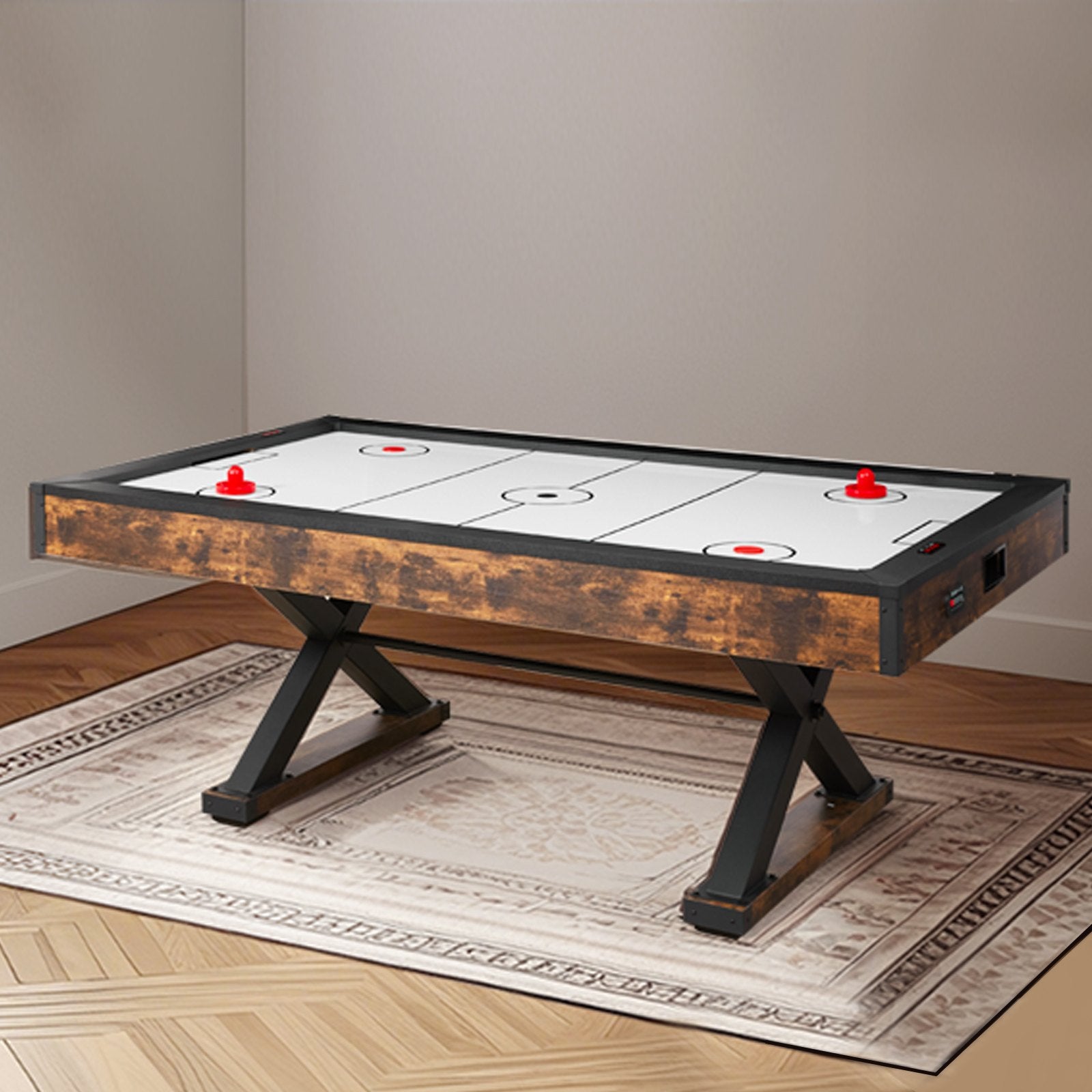 Bring the excitement of arcade gaming to your home with the VEVOR 84" Air Hockey Table. Featuring an air-powered design for fast-paced gameplay, this high-quality table comes with an electronic scorer for tracking points and a complete set of accessories, including pushers. Perfect for game rooms, it makes an excellent holiday present for friends and family. The durable MDF board construction ensures long-lasting use, while the wide application makes it suitable for various recreational settings. Whether it's for a family gathering or a competitive match, this air hockey table is sure to provide hours of entertainment.