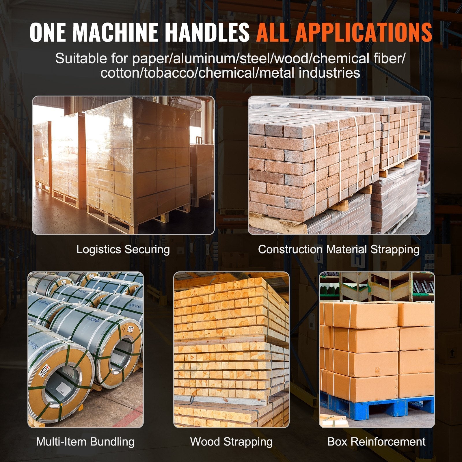 The VEVOR Automatic Electric Strapping Machine is the ultimate tool for efficient and reliable strapping in a variety of industries. Compatible with both PP and PET straps ranging from 0.39" to 0.75", this machine offers strong adjustable tension from 800N to 5000N, ensuring a tight, secure hold on your packages. Powered by high-capacity lithium batteries, it provides extended use and quick recharging. The easy-to-use digital controls make it simple to adjust settings, while its compact design ensures portability and convenience. Whether you're working in warehousing, logistics, or manufacturing, this strapping tool is built to save time and boost efficiency.