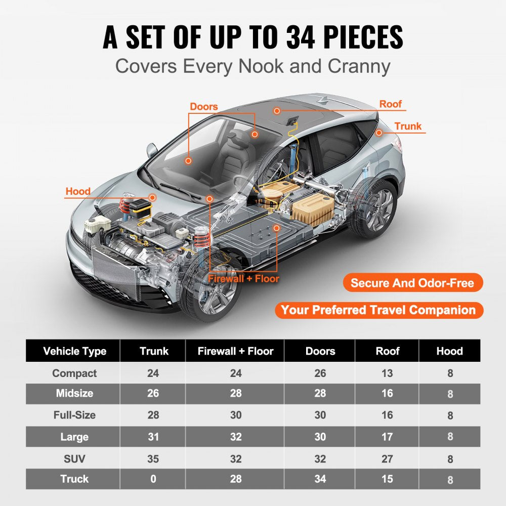 Full Vehicle Coverage: 36 sq.ft total coverage split across 34 easy-to-handle sheets for flexible installation.