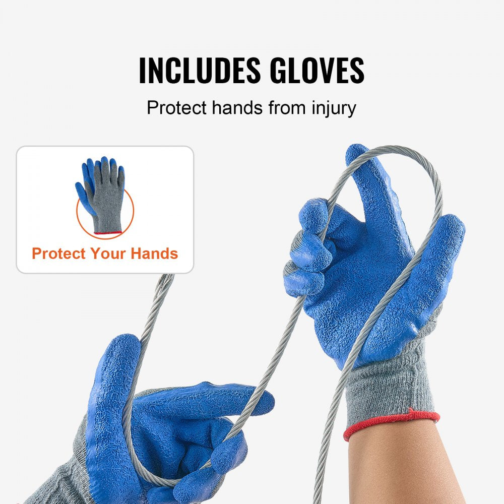 The VEVOR 1/4" Carbon Steel Cable delivers outstanding strength and reliability, making it perfect for heavy-duty applications like cable railings, winches, zip lines, and fencing. Constructed from galvanized carbon steel, this wire rope offers superior corrosion resistance and a smooth surface for safe handling. With a robust 7x19 strand core, it ensures flexibility, durability, and a high load-bearing capacity to meet various needs across residential, commercial, and industrial environments.