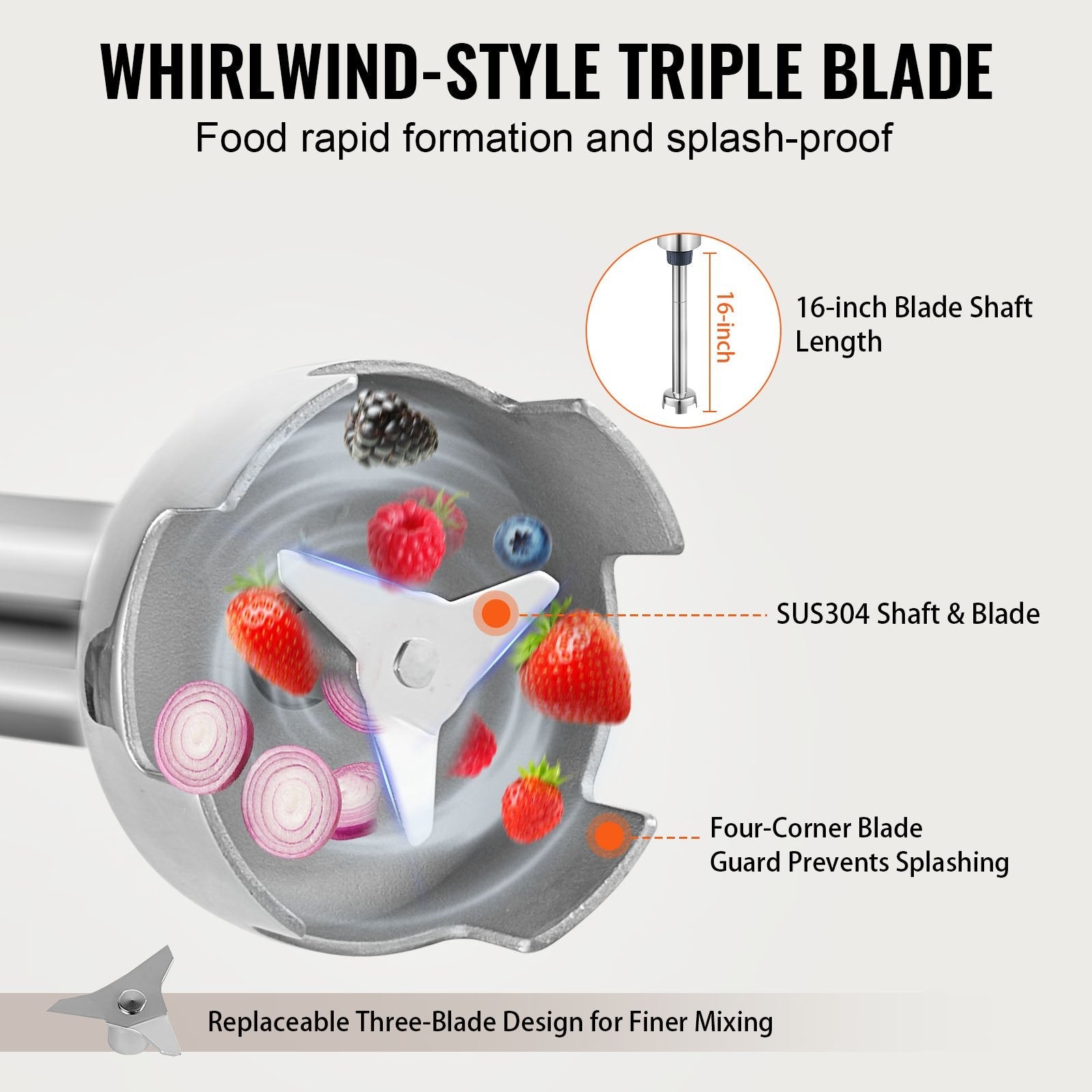 The VEVOR Commercial Immersion Blender is your go-to tool for fast, efficient blending. Powered by a 500W motor, this heavy-duty hand mixer is ideal for making soups, sauces, smoothies, and more. It features a one-touch auto operation, ensuring ease of use while preparing a variety of dishes. The food-grade materials ensure durability and safety, making it perfect for both commercial kitchens and home chefs. With a 16-inch shaft length, you can blend large batches without the hassle. Whether you’re stirring sauces or pureeing soups, this immersion blender delivers powerful, consistent results every time.