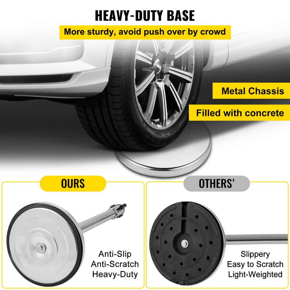 The VEVOR Crowd Control Stanchion Set includes 2 durable stanchions with 6.6 ft retractable black belts, ideal for managing queues and organizing spaces in public or private settings. Designed for strength and stability, each post features a 0.8 mm thick iron and steel structure with a heavy-duty base to prevent tipping. The 4-way connection system allows flexible belt arrangement, making it easy to set up and adjust layouts as needed. With a sleek black design, this stanchion set is perfect for banks, airports, retail stores, and event venues.