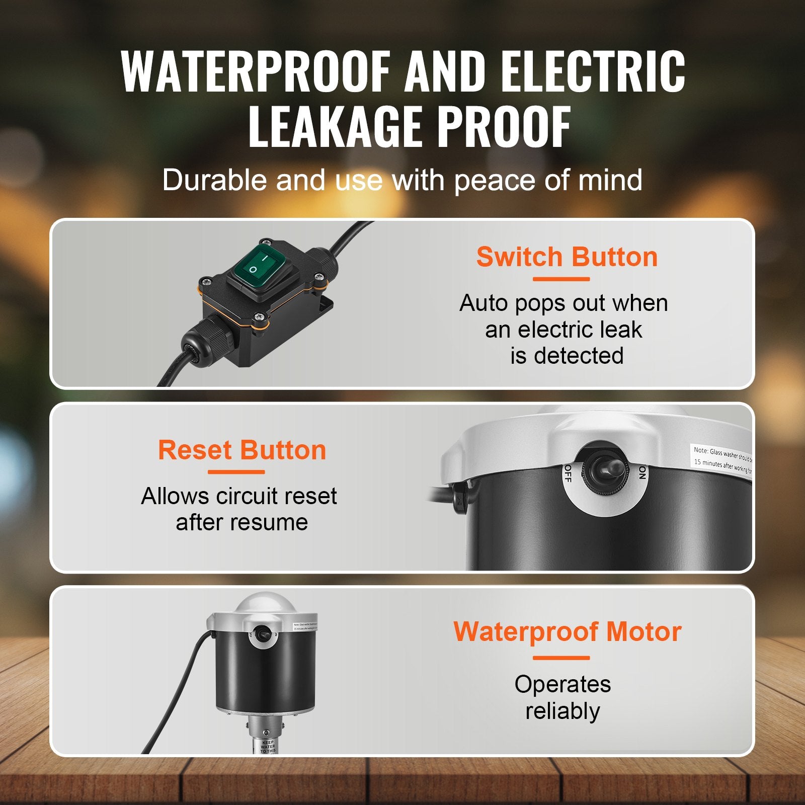 The VEVOR Electric Glass Washer offers a quick and efficient cleaning solution for up to 600 cups per hour. Equipped with 5 brushes, this high-performance glass cleaner ensures thorough cleaning of your wine glasses, mugs, and other drinkware. Its flexible installation options, user-friendly operation, and multiple safety protections make it perfect for both commercial and home use. This water and energy-efficient machine is designed to save you time while keeping your glasses sparkling clean.