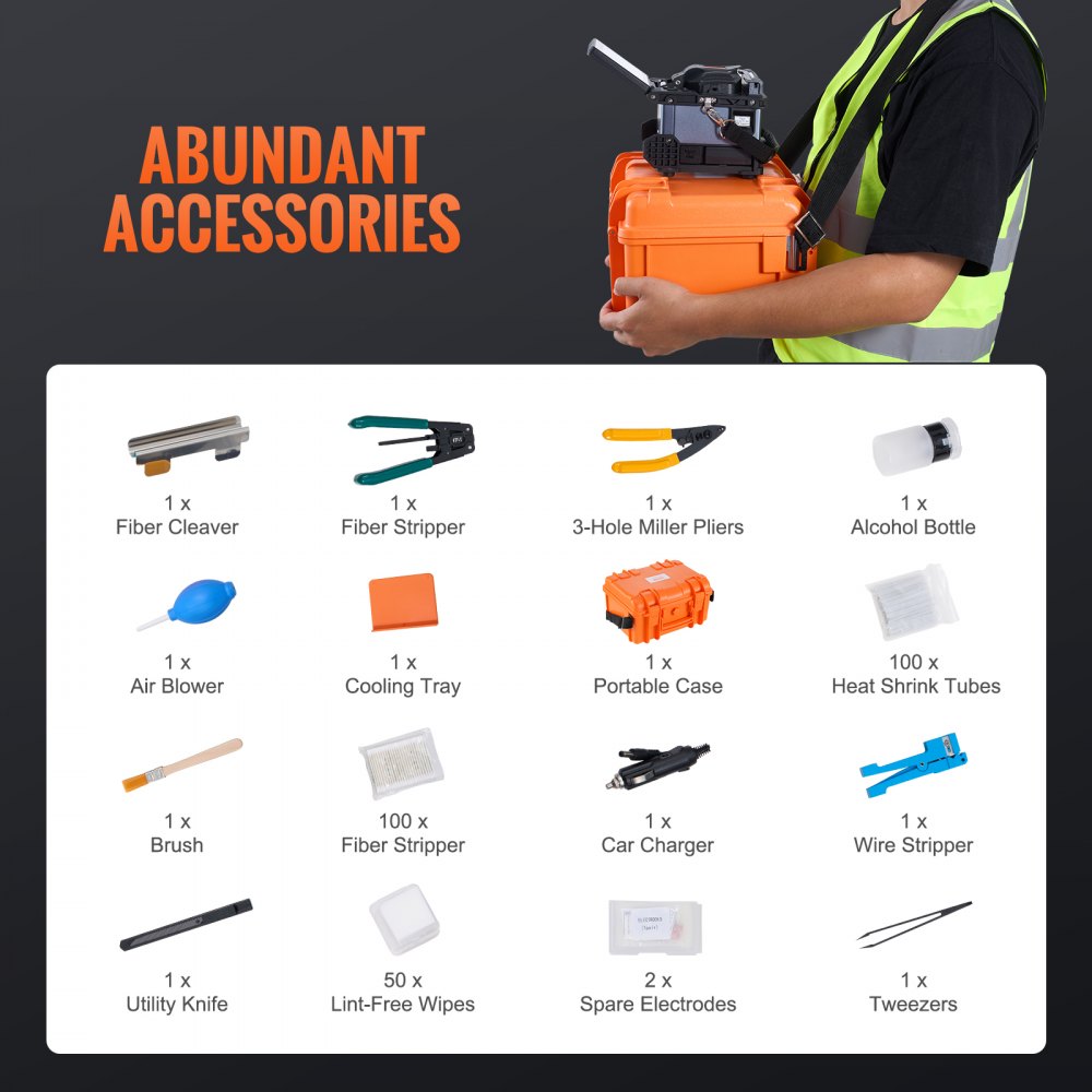 • All-in-One Kit: Includes all the necessary accessories and tools to perform fiber optic splicing right out of the box.