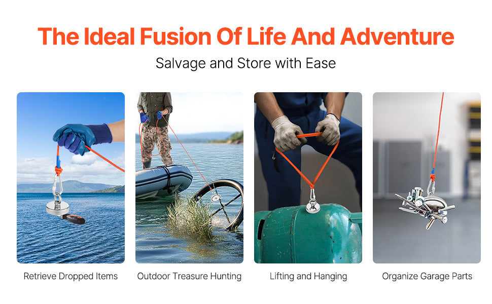 This super strong magnet is not only ideal for underwater retrieval and outdoor treasure hunting, but also ideal for hanging items, storing garage parts, and more. With its diverse functions, it brings added convenience and enjoyment to both your outdoor adventures and home use.