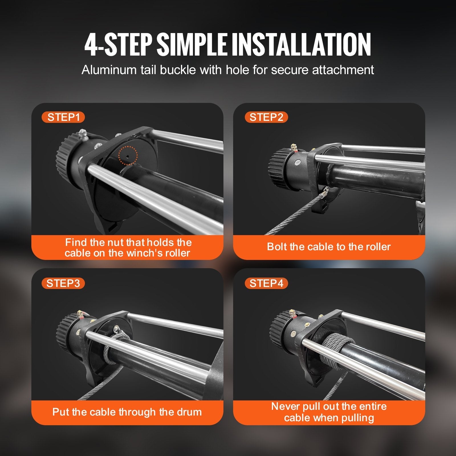 Steel Winch Cable: Constructed from strong galvanized steel, offering superior strength and long-lasting durability for all your towing needs