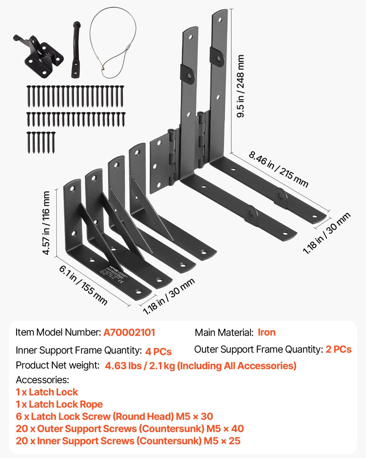 Ensure the stability and longevity of your gate with the VEVOR Gate Corner Brace Bracket Anti-Sag Gate Frame Hardware Kit. Crafted from durable iron, this set includes both inner and outer support frames designed to prevent sagging and enhance your gate’s structural integrity. The corrosion and rust-resistant material ensures reliable performance, while the high compatibility with various gate types makes installation hassle-free. With its hinge design and easy-to-follow instructions, this kit is the perfect solution for a long-lasting, stable gate setup.
