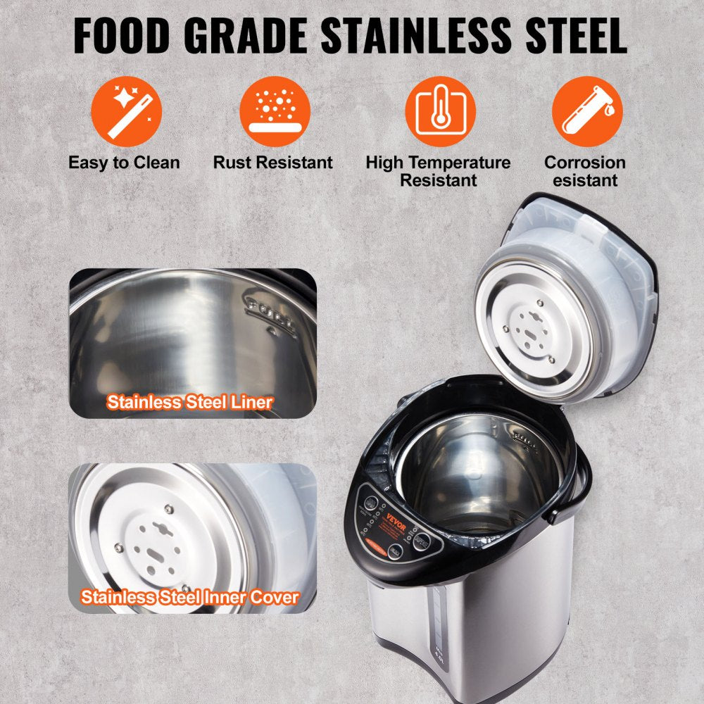 The VEVOR 4L Hot Water Dispenser offers fast and reliable access to hot water at the touch of a button. Designed with four precise temperature settings (98°C, 85°C, 60°C, and 40°C), it suits everything from brewing tea and coffee to preparing baby formula. Made with a durable 304 stainless steel liner and user-friendly interface, this countertop water boiler features 3-way dispensing and safety-first design for everyday convenience. Ideal for homes, offices, and break rooms.