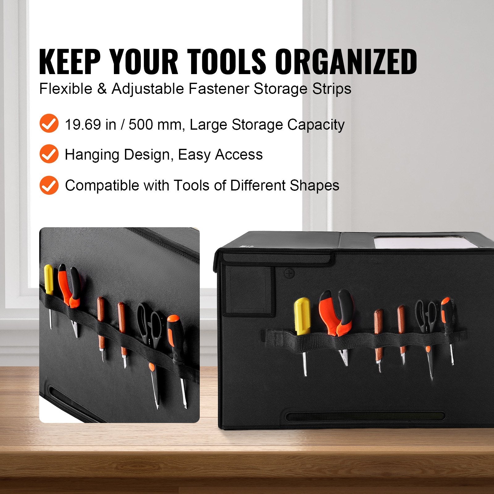 Tool Storage: Includes adhesive fastener straps for storing tools and accessories