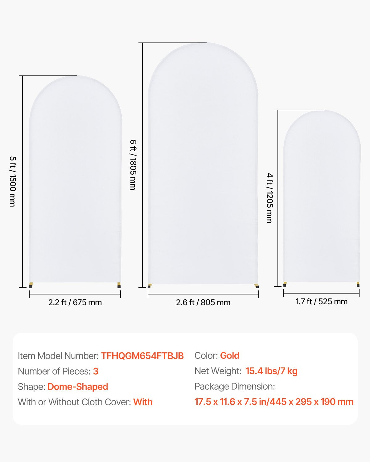 Create a stunning backdrop for any event with the VEVOR Metal Arch Backdrop Stand Set. This set of three gold dome-shaped arches, paired with premium gauze, is perfect for weddings, parties, photo shoots, and special occasions. Easy to install, sturdy, and reusable, these arches provide a beautiful and customizable display for any celebration.
