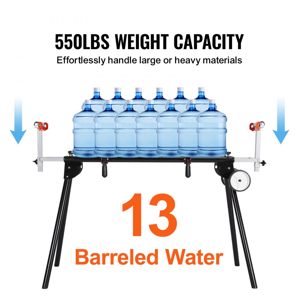 Heavy-Duty Load Capacity: With a max weight capacity of 550 lbs / 249.5 kg, this stand can handle large, heavy miter saws without issue.