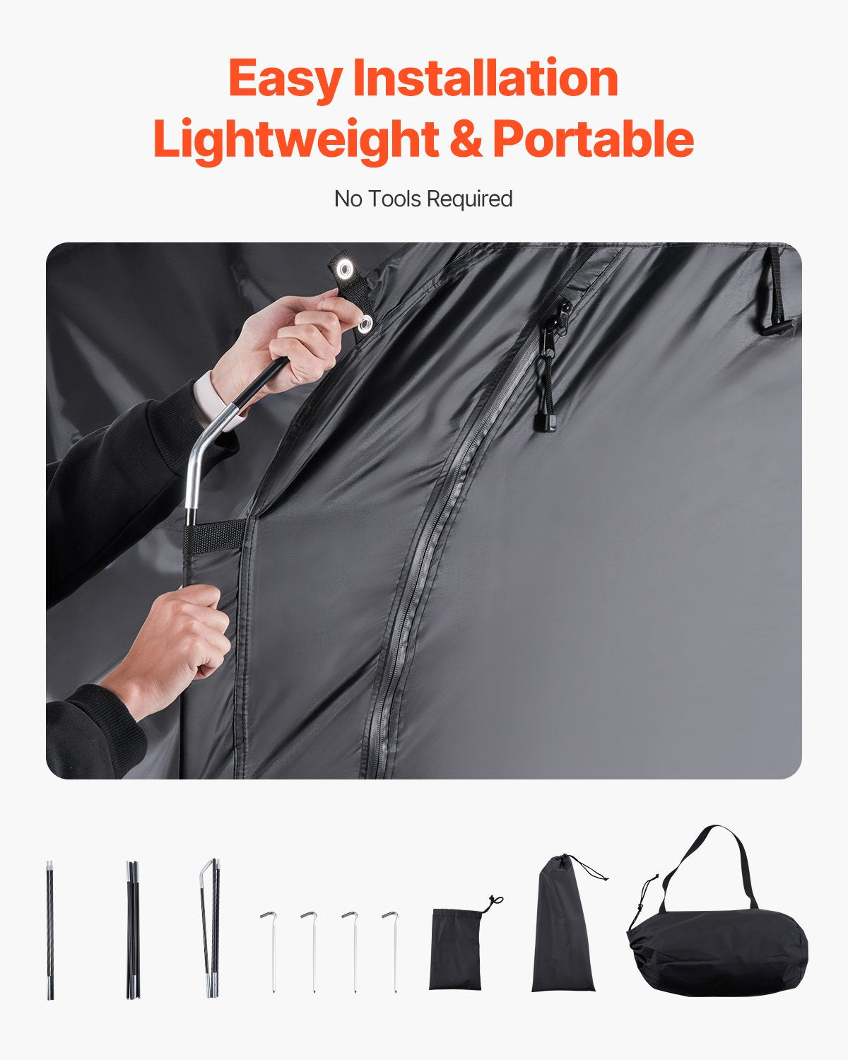 Protect your bikes from the elements with the VEVOR Outdoor Bike Storage Tent. Designed to accommodate 4 to 5 bicycles, this spacious, waterproof tent features high-quality PU4000mm waterproof material, a ventilated window for airflow, and durable zippers for secure access. The arc-top shape provides extra headroom, and the tough Oxford fabric combined with fiberglass support poles ensures stability and weather resistance. Whether it’s rain, wind, or UV rays, this bike storage tent keeps your bikes safe and dry, offering peace of mind when parked outdoors.