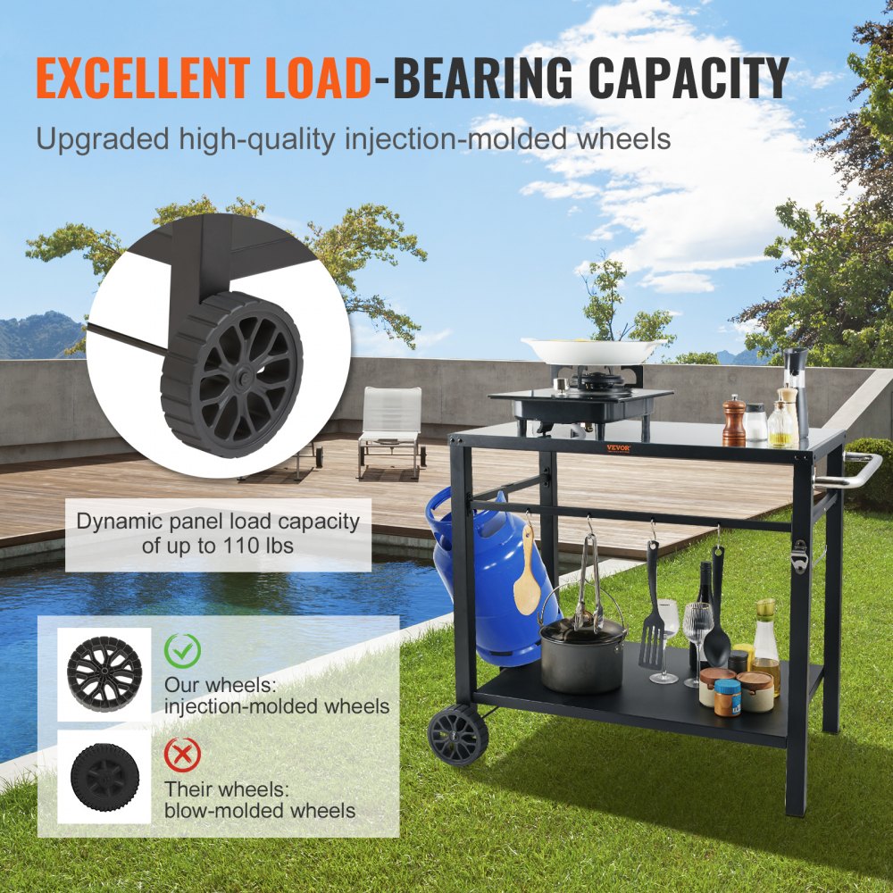Versatile Outdoor Use: Perfect as a prep station, pizza oven table, or serving cart for BBQs, garden parties, and camping.