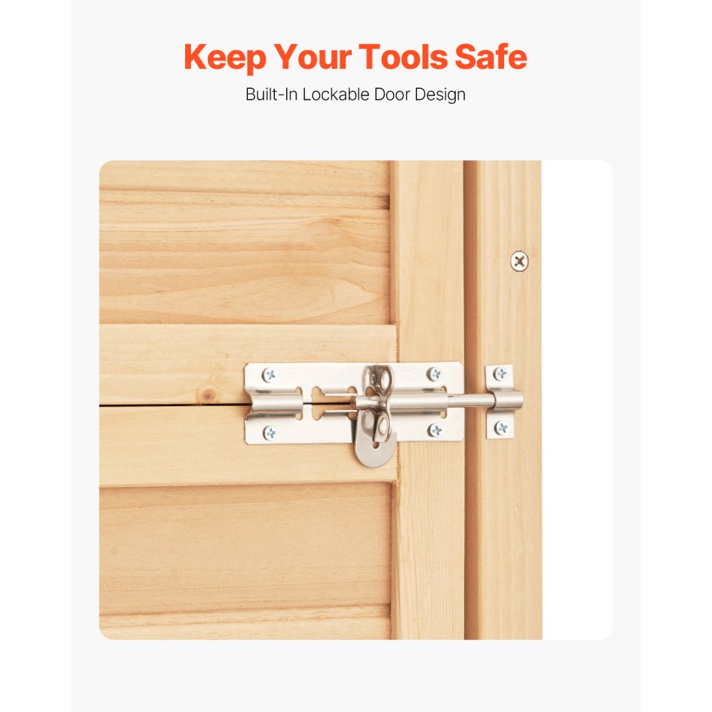 The VEVOR Outdoor Wooden Storage Shed is the perfect solution for organizing your garden tools and outdoor accessories. Built with durable cedar wood and featuring a clear lacquer finish, this shed offers both functionality and aesthetic appeal. With its extra-large capacity, it provides ample storage space to keep tools, equipment, and supplies organized. The five cabinet shelves allow for efficient storage, while the sturdy structure ensures high load capacity and long-lasting durability. This waterproof shed is designed to withstand the elements, making it ideal for outdoor use. Whether used in your garden, yard, or patio, this storage shed offers convenient and organized storage with a touch of style.