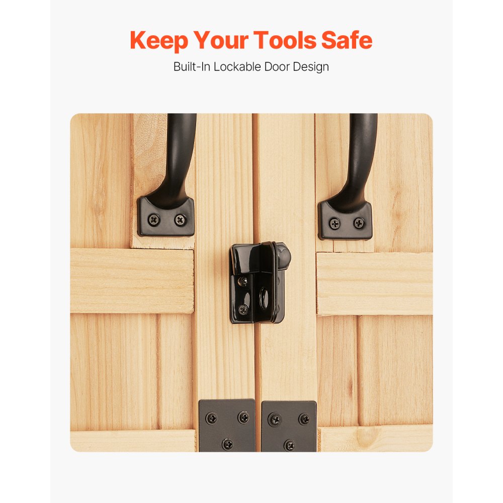 The VEVOR Outdoor Wooden Storage Shed is the ideal solution for storing garden tools, equipment, and outdoor essentials. Crafted from high-quality cedar wood with a clear lacquer finish, this shed offers both durability and aesthetic appeal. Featuring 4 cabinet shelves for organized storage, it is designed for easy maintenance and long-lasting performance. Its spacious 58x78 inch dimensions make it perfect for larger storage needs, while its waterproof design ensures your tools and outdoor items stay safe and dry. With a sturdy structure and high load capacity, this storage shed is built to withstand the elements and provide reliable outdoor storage for years to come.