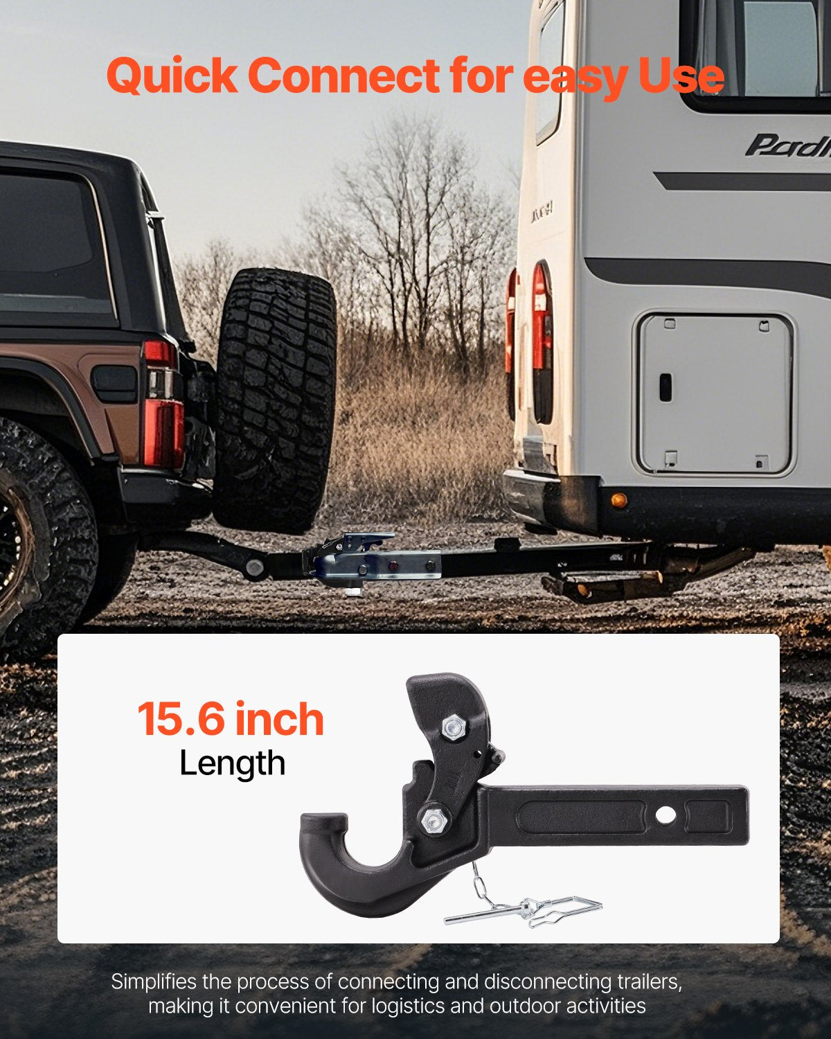 Wide Compatibility: Compatible with a variety of trailers and vehicles, thanks to the 2-inch receiver hook and 2.5 to 3-inch lunette ring size.