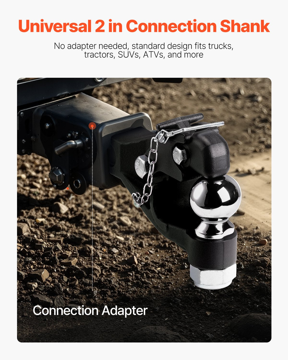 The VEVOR Pintle Hitch Receiver Hook is engineered for heavy-duty towing, designed to provide an exceptional 20,000 lbs towing capacity. Compatible with 2.5 to 3-inch lunette rings, this durable carbon steel hitch ensures secure towing for trailers, trucks, and other heavy equipment. Built for strength, reliability, and ease of use, this pintle hitch is the perfect addition to your towing setup.