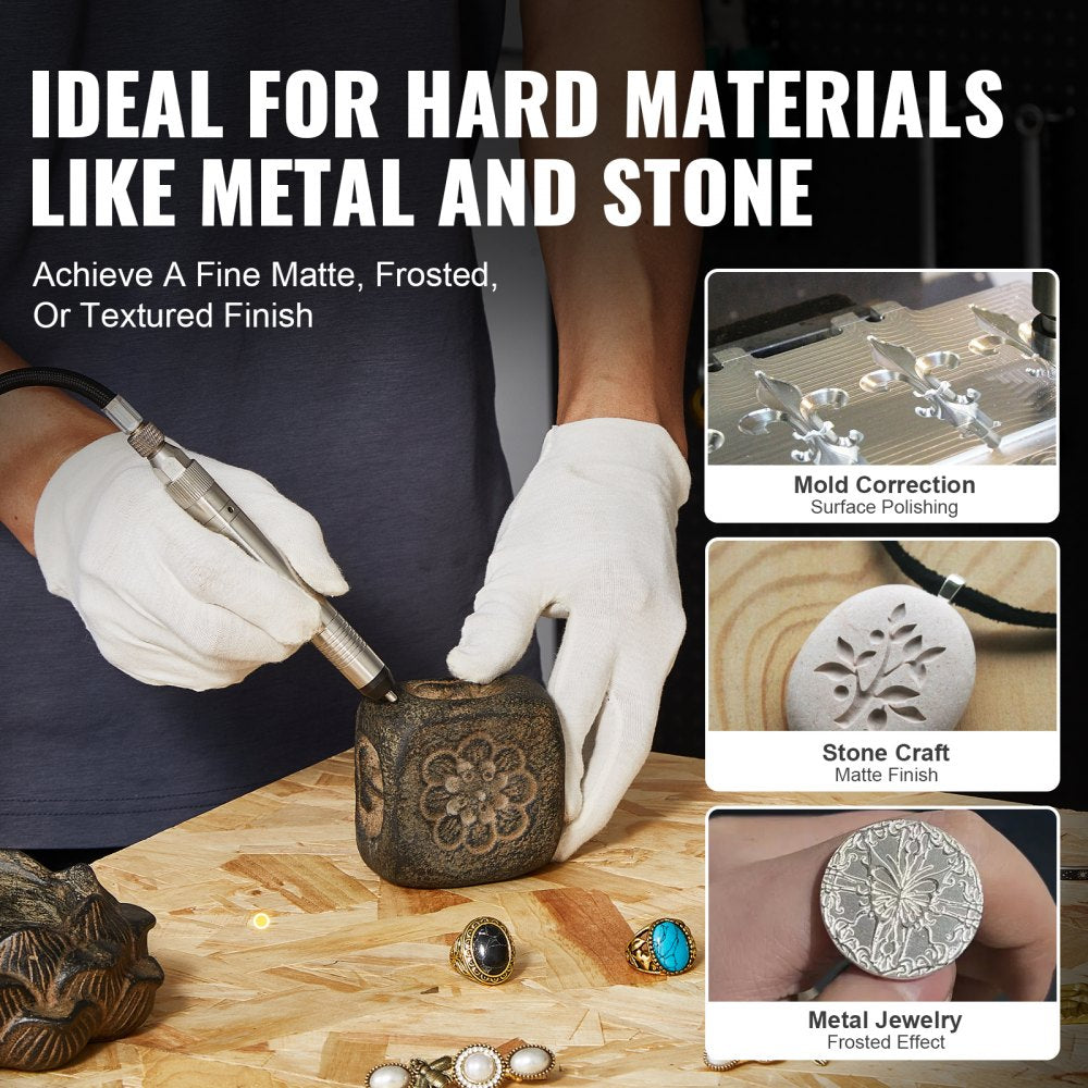 Experience precision and power with the VEVOR Pneumatic Engraving Pen, designed for detailed carving, etching, and engraving on hard materials like metal, glass, stone, and ceramics. With a high working speed of 13,500 BPM and constructed from durable SUS304 stainless steel, this lightweight air scribe delivers long-lasting performance. The 1/4" thread size fits standard air systems, while the ergonomic grip ensures comfort during extended use. Ideal for professionals and hobbyists alike.