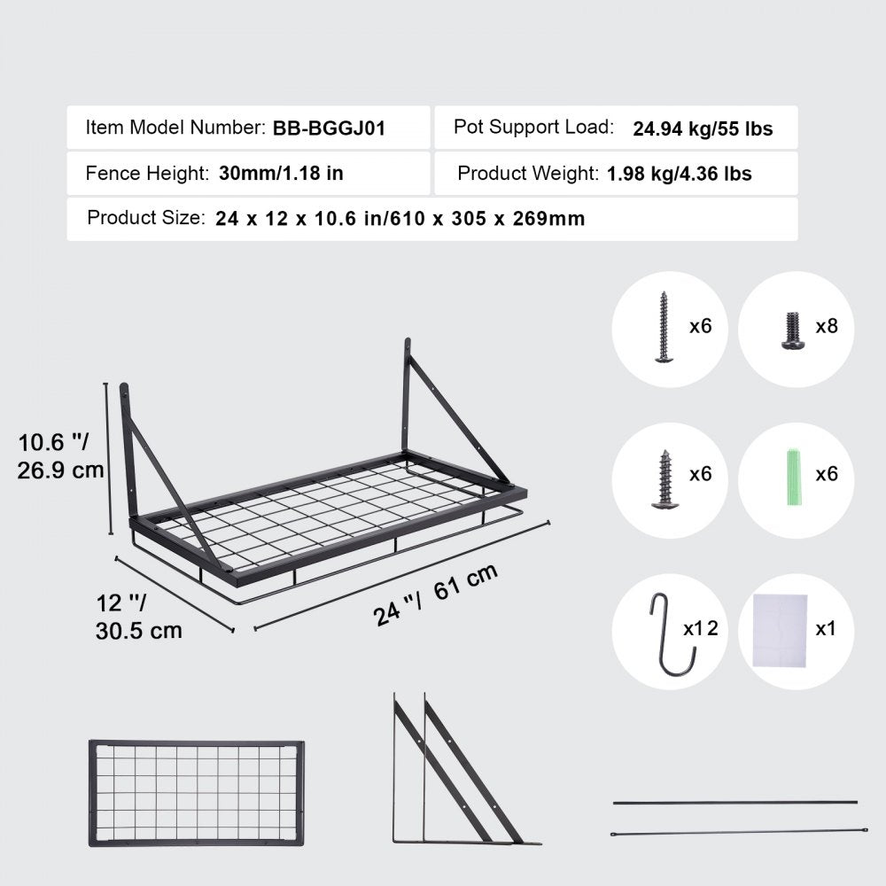 Keep your kitchen organized and stylish with the VEVOR 24-inch Wall Mounted Pot Rack. Designed to hold pots, pans, utensils, and cookware, this sturdy rack supports up to 55 lbs, offering ample capacity for your essential kitchen items. Made from high-quality carbon steel, it combines durability with a user-friendly design and comes with 12 S-hooks for convenient hanging. Easy to install, it’s a versatile addition that maximizes space and enhances your cooking area.