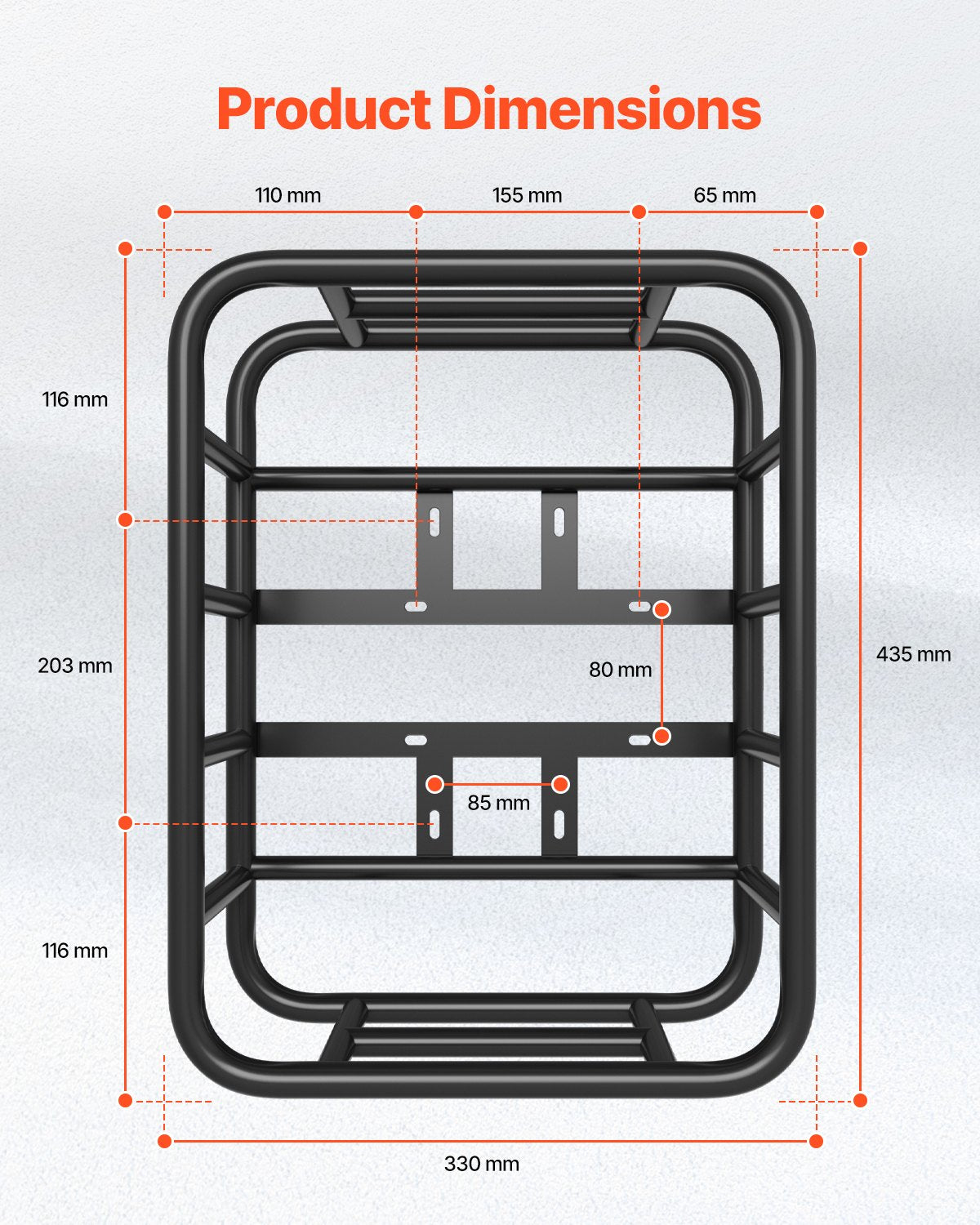 Upgrade your cycling convenience with the VEVOR Rear Bike Basket—an ideal companion for your daily commutes, grocery runs, or pet outings. Crafted for durability and ease of use, this large rear bicycle basket features a sturdy steel frame that supports up to 100 lbs (45 kg). Its spacious 17 x 13 x 6 inch (435 x 330 x 155 mm) design ensures ample room for groceries, bags, or even small pets. It comes equipped with a rainproof liner and cargo net to secure your items in all weather conditions. The rust-resistant finish and quick-installation mechanism make it a reliable and low-maintenance addition to your bike.