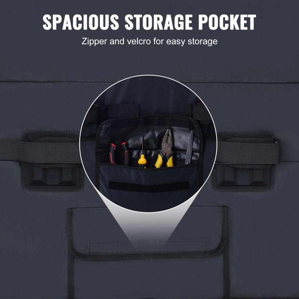 Protect your pickup truck’s tailgate while transporting up to two mountain bikes with the VEVOR 33" Tailgate Bike Pad. Designed for small-size pickup trucks with a 33-inch bed width, this pad features triple-layer protection with durable PVC, sponge padding, and a soft crystal velvet surface. Reflective strips enhance safety during transport, while convenient tool pockets and zippered storage add functional organization. Lightweight and easy to install, this universal tailgate pad offers secure, hassle-free bike transport and versatile cargo protection.