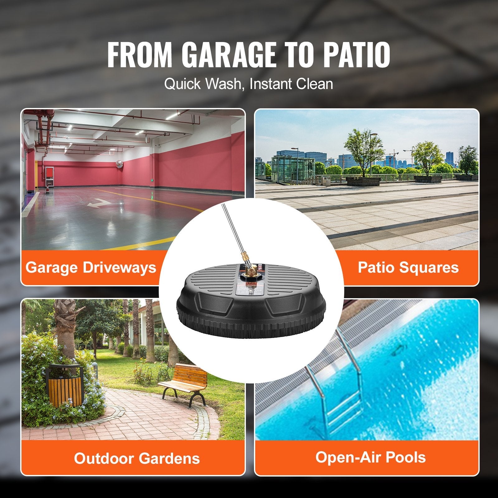 Achieve a professional-grade clean with the VEVOR Universal 15" Pressure Washer Surface Cleaner. Designed for use with pressure washers up to 4000 PSI, this powerful attachment makes cleaning large surfaces like driveways, patios, and sidewalks quick and easy. Featuring a dual nozzle design and splash prevention, it covers a wide area while minimizing water waste. Save time and energy while removing tough stains effectively with this durable and easy-to-use surface cleaner.