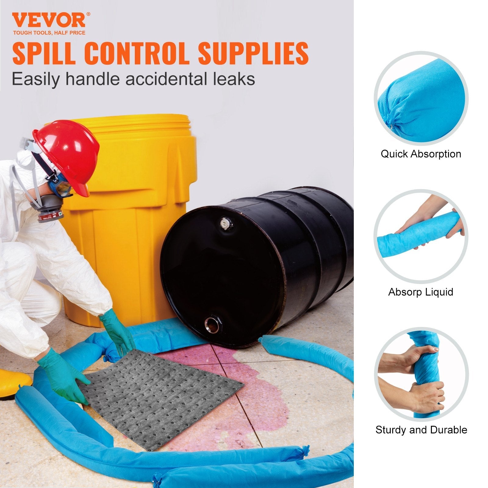 Contain and control spills with the VEVOR Universal Absorbent Sock—designed for quick cleanup and maximum absorption. Each 47.24" long sock offers powerful liquid containment with mildew-resistant material, reusable construction, and up to 20 gallons of total absorption across the 12-pack. Ideal for industrial, workshop, garage, and household use, these flexible socks conform easily around machinery, walls, and corners to keep workspaces dry and safe.