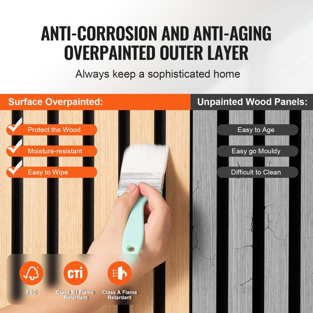 Enhance the aesthetic and acoustics of your space with VEVOR’s Wood Slat Acoustic Panels. Designed to bring a natural harmony to any environment, these panels are perfect for modern wall decor. The light oak color adds a touch of elegance to your room while the acoustic properties help reduce noise levels for a more peaceful ambiance. With simple and quick installation, flexible layout options, and multiple color choices, these panels are a versatile solution for both residential and commercial spaces.