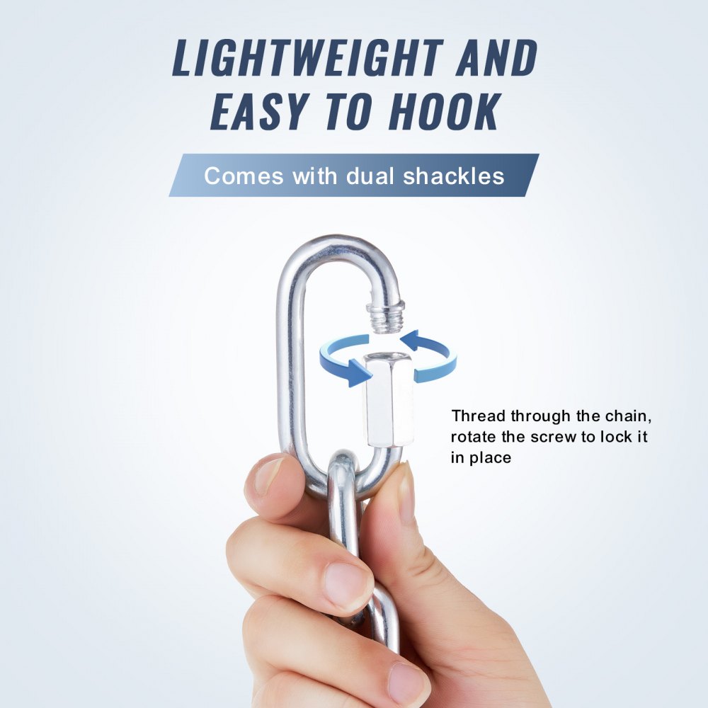 The VEVOR Zinc Plated Proof Coil Chain is built to handle heavy-duty tasks with ease. Crafted from high-strength carbon steel and finished with a rust-resistant galvanized coating, this 5/16" x 6' chain sling offers reliable performance for lifting, towing, securing loads, and more. Its rugged build and high load-bearing capacity make it ideal for both indoor and outdoor applications.