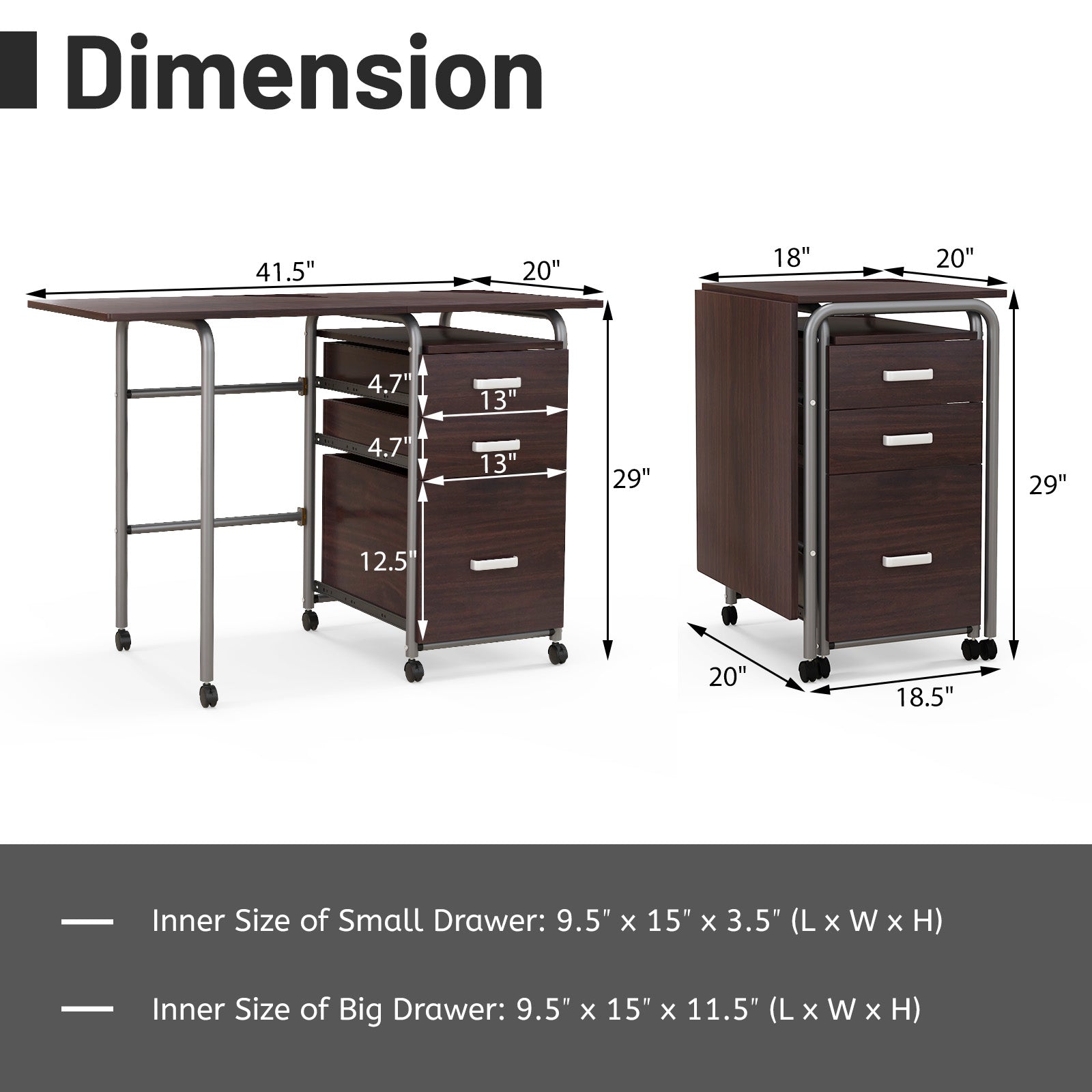 This folding computer desk is an ideal solution for those with limited space. Featuring a clever foldable design, the desk surface can be easily folded in half when not in use, helping you save valuable space. Its sleek, modern design complements any room decor, making it perfect for your home office, living room, or dorm room. With three spacious drawers for storage and six wheels for easy mobility, this desk offers both convenience and functionality.