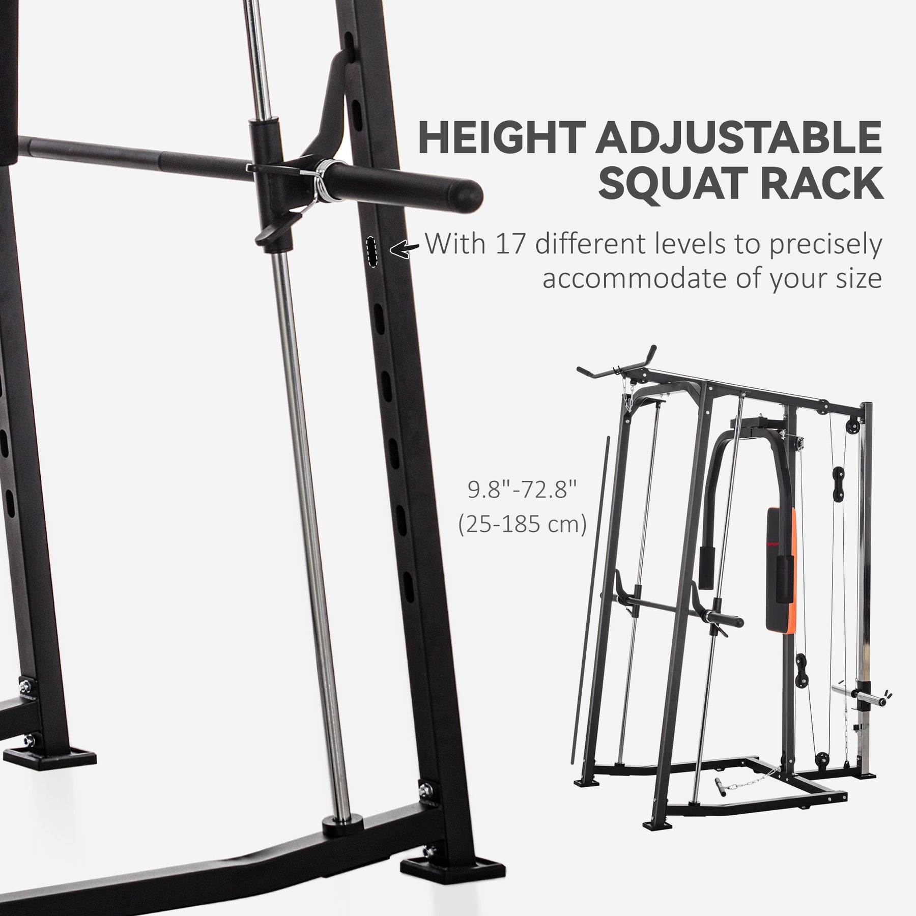 Elevate your home gym setup with this all-in-one Home Multi Gym Station, designed to offer a diverse range of workout options in a compact space. It combines a squat rack, dual cable system, and chest press station, providing versatility for full-body training. The squat cage is height-customizable, with adjustable barbell heights from 9.8"-72.8" (25-185 cm), supporting up to 220 lbs (100 kg) for various exercises. The enhanced dual cable pulley system is compatible with both 1" and 2" weight plates, allowing up to 55 lbs (25 kg) per side for effective resistance training. Built with a robust 2" x 2" (50 x 50 mm) steel tube frame, this power rack ensures stability, safety, and durability during your toughest workouts. Perfect for strength training, toning muscles, and improving overall fitness, this gym station is an essential addition to any home gym.