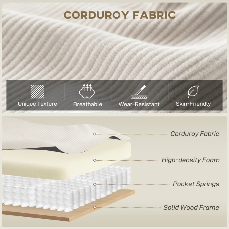 Material: Corduroy (90% Polyester, 10% Nylon), Foam, Wood