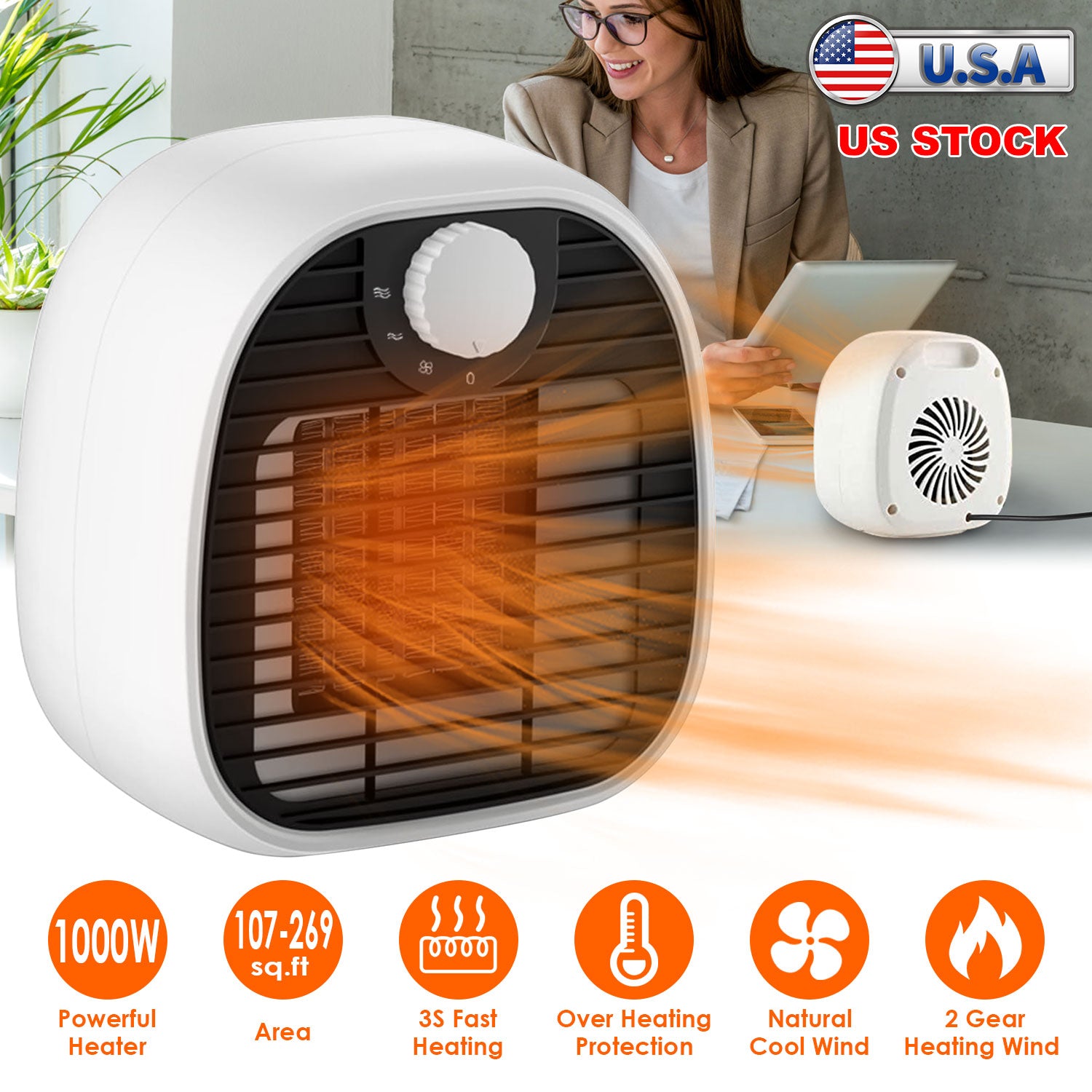 3 Gear Wind Modes: Enjoy versatile comfort year-round with 3 temperature levels controlled by a knob. Choose between Natural Wind for cool air in summer, Low Warm (650W), and High Warm (1000W) for winter warmth.