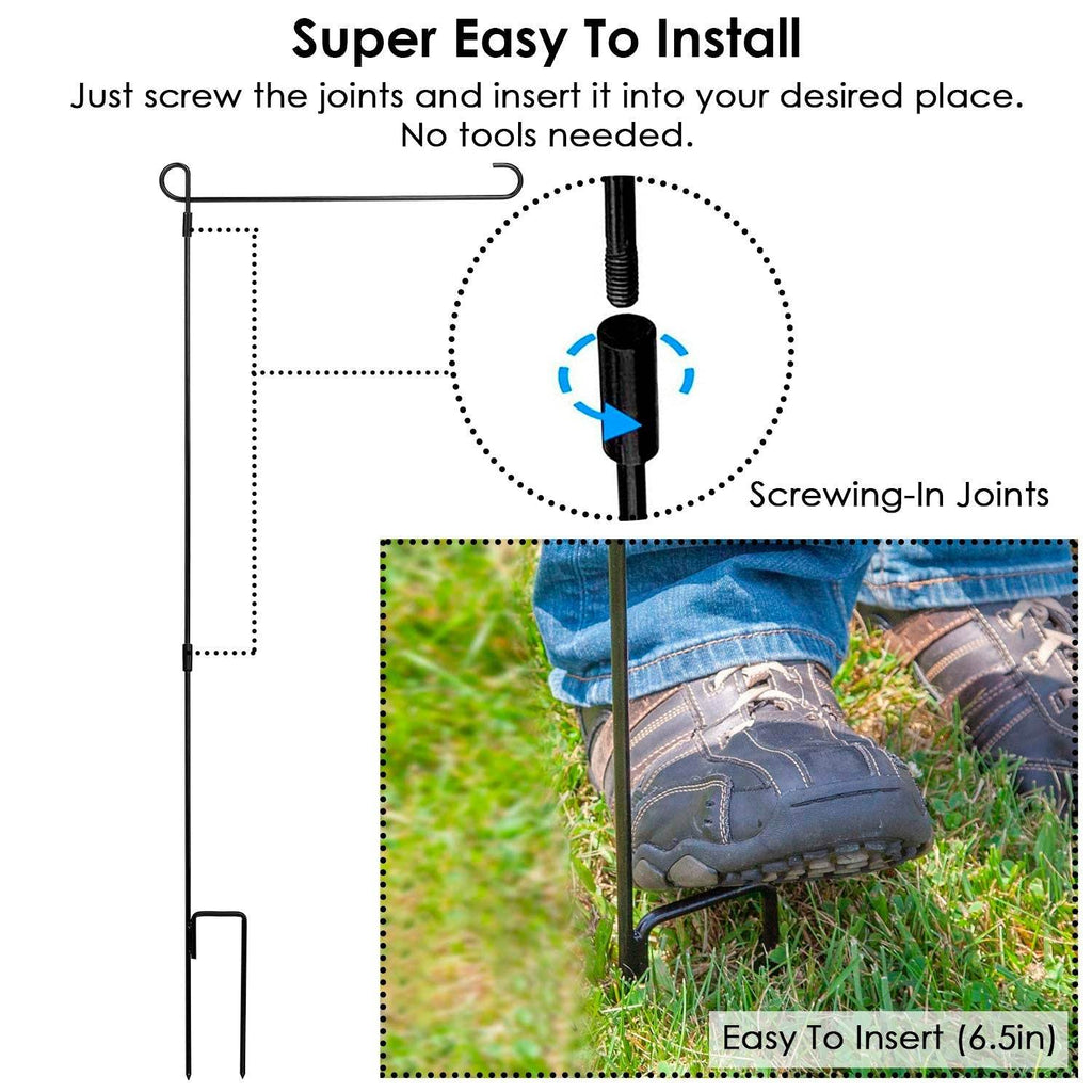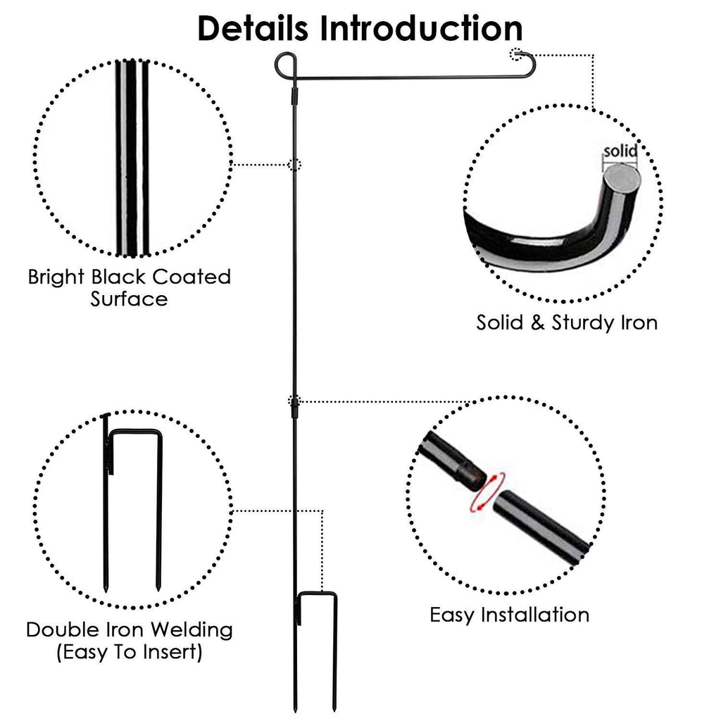 Display your favorite seasonal flags with this durable and weather-resistant garden flag stand. Designed for outdoor use, this sturdy wrought iron flagpole features a rust-resistant black coating and a stable structure that holds your decorative flags securely. Easy to assemble and store, it’s perfect for showcasing holiday, seasonal, or decorative flags in your yard, garden, or walkway.