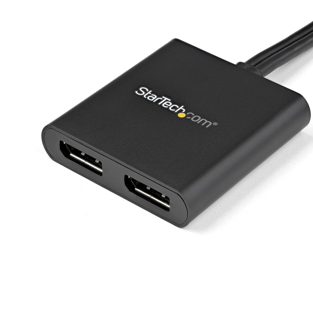 Expand your workspace with the 2-Port Mini DisplayPort to DisplayPort MST Hub, designed to connect two independent DisplayPort monitors to a single Mini DisplayPort 1.2 output. Supporting Dual 4K @ 30Hz or 1080p @ 60Hz, this hub utilizes MST (Multi-Stream Transport) to extend or mirror displays for improved productivity in financial trading, content creation, or multitasking environments. Compact and bus-powered, it's the perfect solution for Windows-based laptops, desktops, and workstations. Not compatible with macOS (MST unsupported).