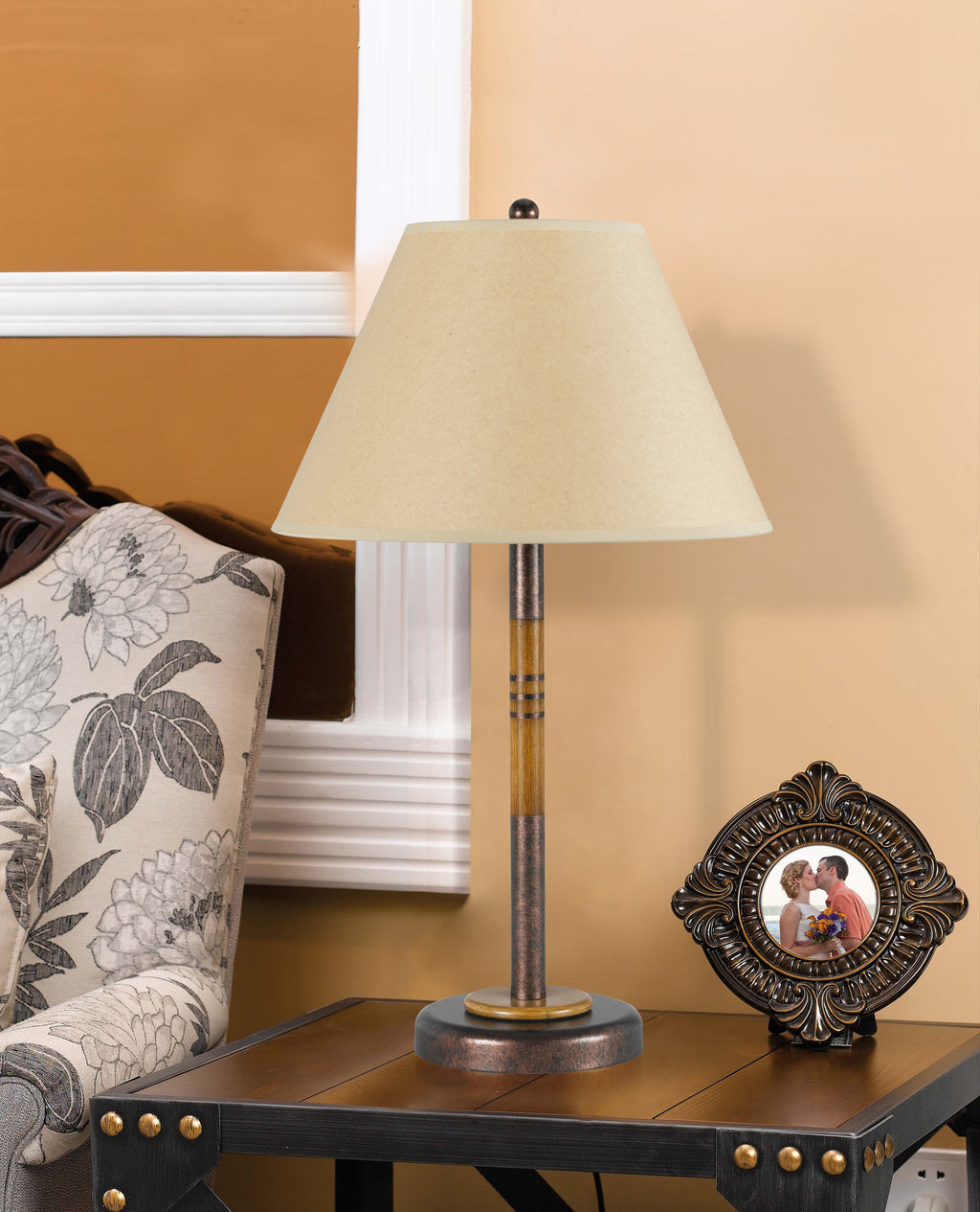 This 24" rust metal table lamp with brown empire shade is a great way to add some brightness to any corner of your home. The base of this lamp is made of rust metal. The brown shade has a empire shape and is made of paper, which makes it a perfect choice. This standard table lamp is designed to provide general lighting to the area. High quality design makes this a great lamp for not only lighting, but accenting a room with style. It is perfect for virtually any decor. 24" H x 14" W x 14" D