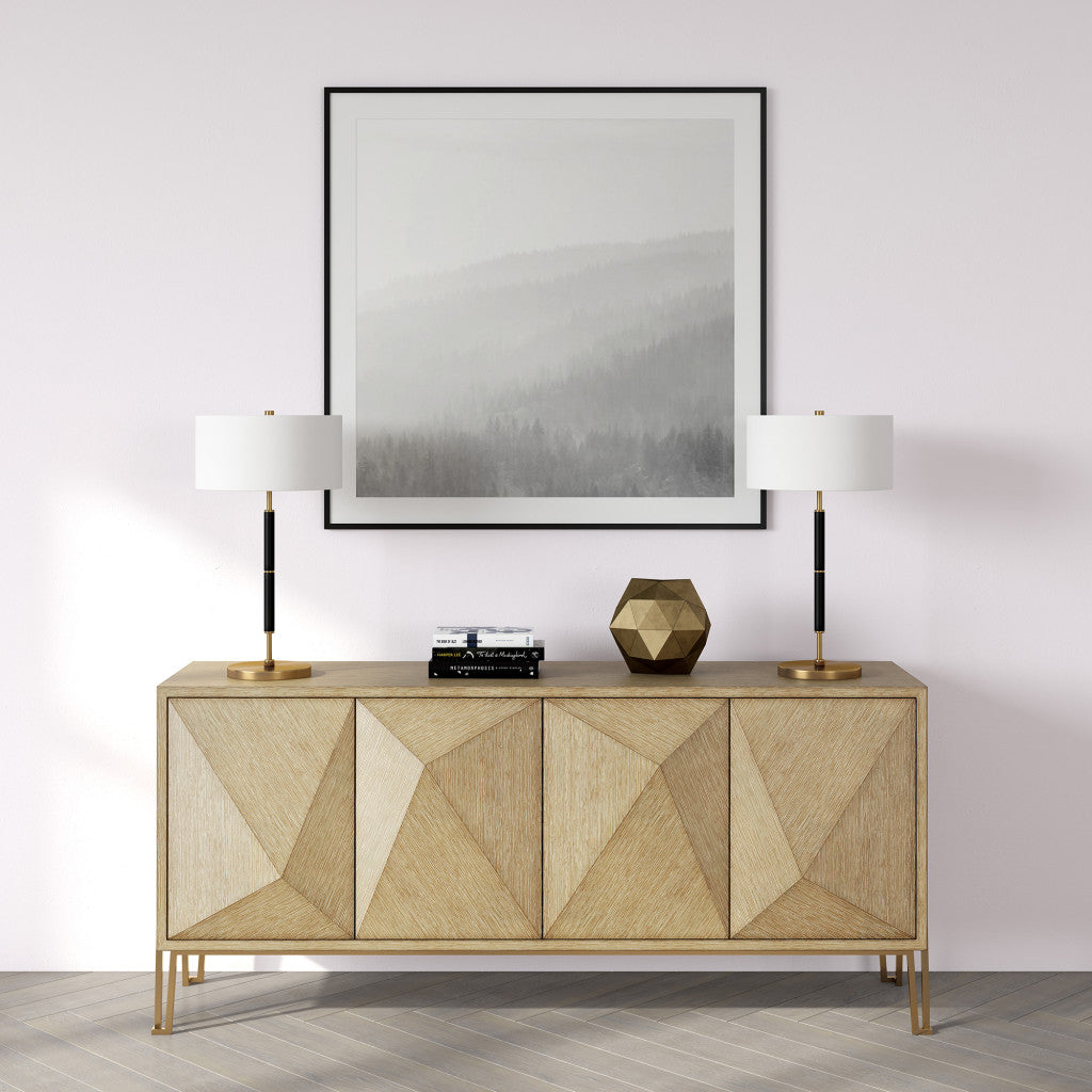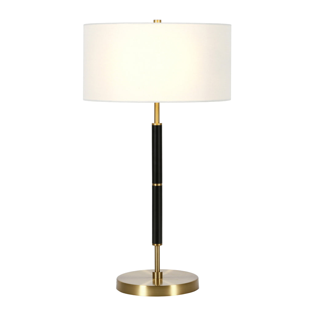 Add a bright anchor to your room with this 25-inch black and gold metal two light table lamp with white drum shade. The lamp is made of sturdy metal and features a black and gold color. The white shade has a drum shape and is made of fabric, which makes it a perfect choice. This standard table lamp is designed to provide general lighting to the area. High quality design makes this a great lamp for not only lighting, but accenting a room with style. Bring some lite and good vibes into your space with this updated and stylishly designed lamp. 25-inch H x 14-inch W x 14-inch D