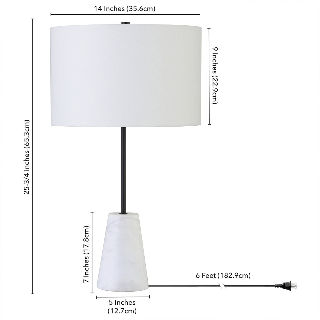 Add a bright anchor to your room with this 26-inch black and white marble table lamp with white drum shade. A gorgeous black and white marble base brings just the right amount of pizzazz to this fabulous lamp. The white drum fabric shade is a great compliment to this lamp. This standard table lamp is designed to provide general lighting to the area. Use this lamp anywhere and elevate the look of the whole space. The perfect lamp to create just the right natural and soothing light in your space. 25.5-inch H x 14-inch W x 14-inch D