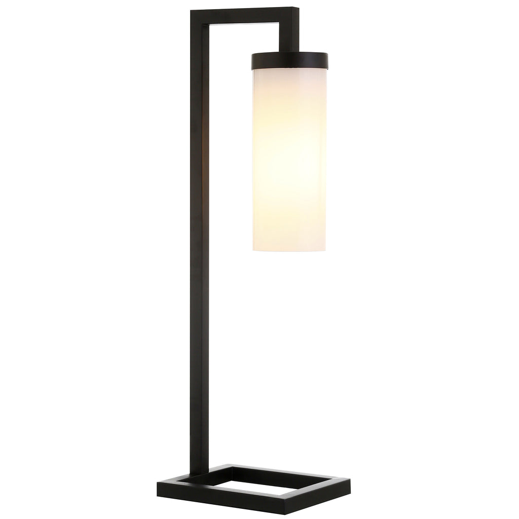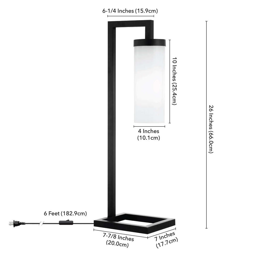 Add a bright anchor to your room with this 26-inch black metal arched table lamp with white cylinder shade. The lamp is made of sturdy metal and features a black color. The white shade has a cylinder shape and is made from glass. A sophisticated take on a classic, this arched table lamp is a great option for a unique look. The light that this lamp throws is soft and warm to elevate the look of most any space in your home. The perfect lamp to create just the right natural and soothing light in your space. 26-inch H x 8-inch W x 7-inch D