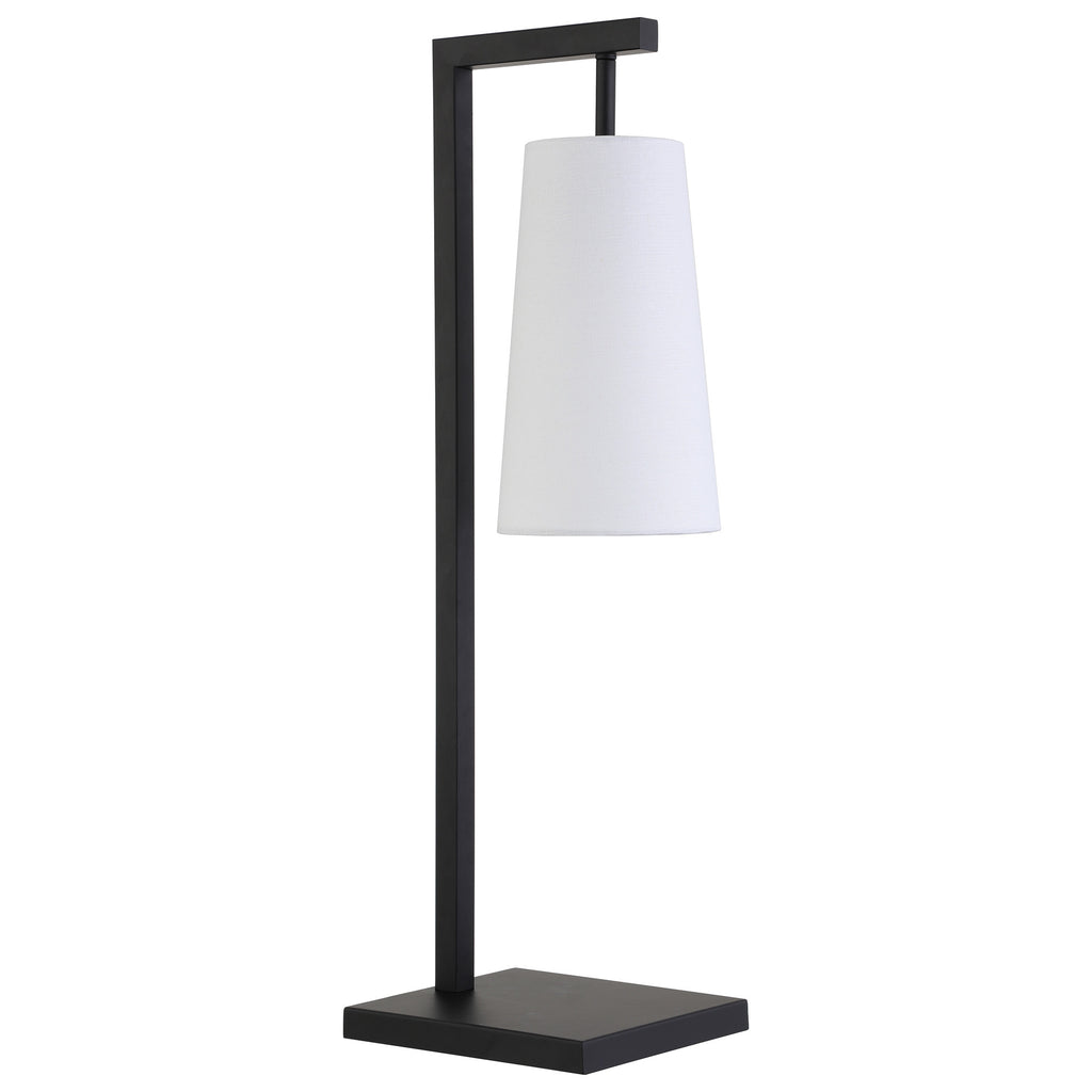 Embrace the good life with this hard working and stylish 26-inch black metal desk table lamp with white cone shade. The base of this lamp is made of metal finished in a black tone. The white cone fabric shade is finishes this piece off nicely and symmetrically this desk lamp provides 'task lighting' that will illuminate your working area for reading or writing. Use this lamp anywhere and elevate the look of the whole space. Bring some lite and good vibes into your space with this updated and stylishly designed lamp. 26-inch H x 9-inch W x 7-inch D