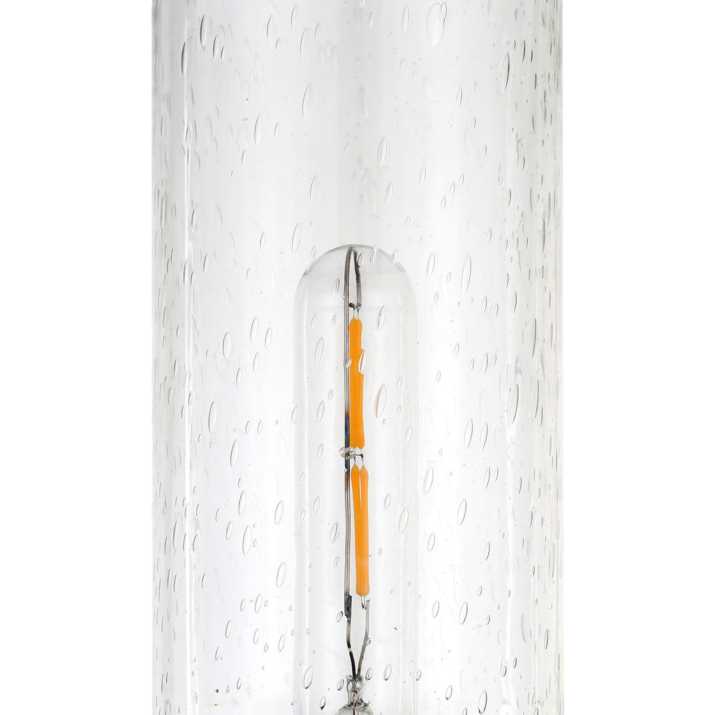 Add a bright anchor to your room with this 26-inch black metal table lamp with clear seeded cylinder shade. The base of this lamp is made of black metal. The clear cylinder glass shade is finishes this piece off nicely and symmetrically this standard table lamp is designed to provide general lighting to the area. High quality design makes this a great lamp for not only lighting, but accenting a room with style. Bring some lite and good vibes into your space with this updated and stylishly designed lamp. 26-inch H x 7-inch W x 7-inch D