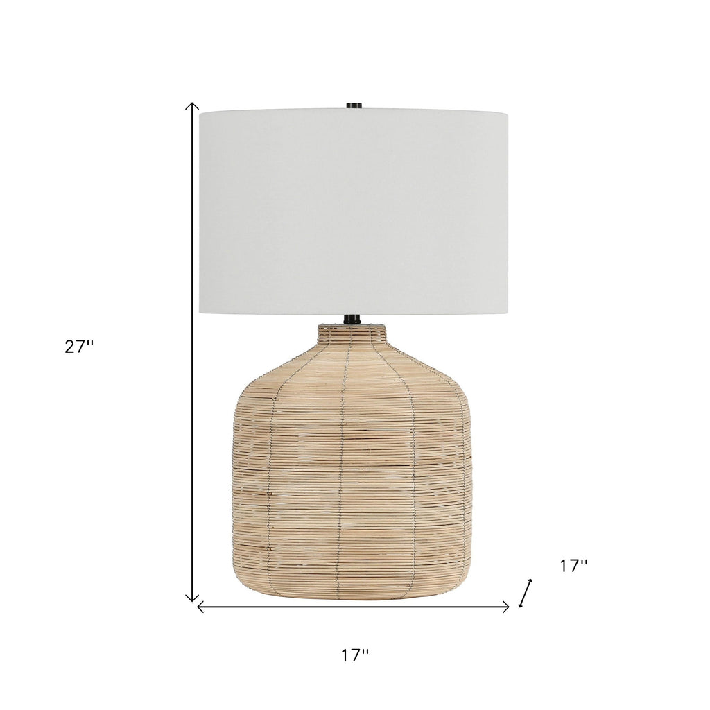 With this 27-inch natural rattan table lamp with white drum shade you can bring in design to any space along with adding some ambient lighting. The base of this lamp is made of natural rattan. Includes a white fabric, drum shaped shade, making this a fashionable piece that will complement most any interior. This standard table lamp is designed to provide general lighting to the area. Use this lamp anywhere and elevate the look of the whole space. It is perfect for virtually any decor. 27-inch H x 17-inch W x 17-inch D