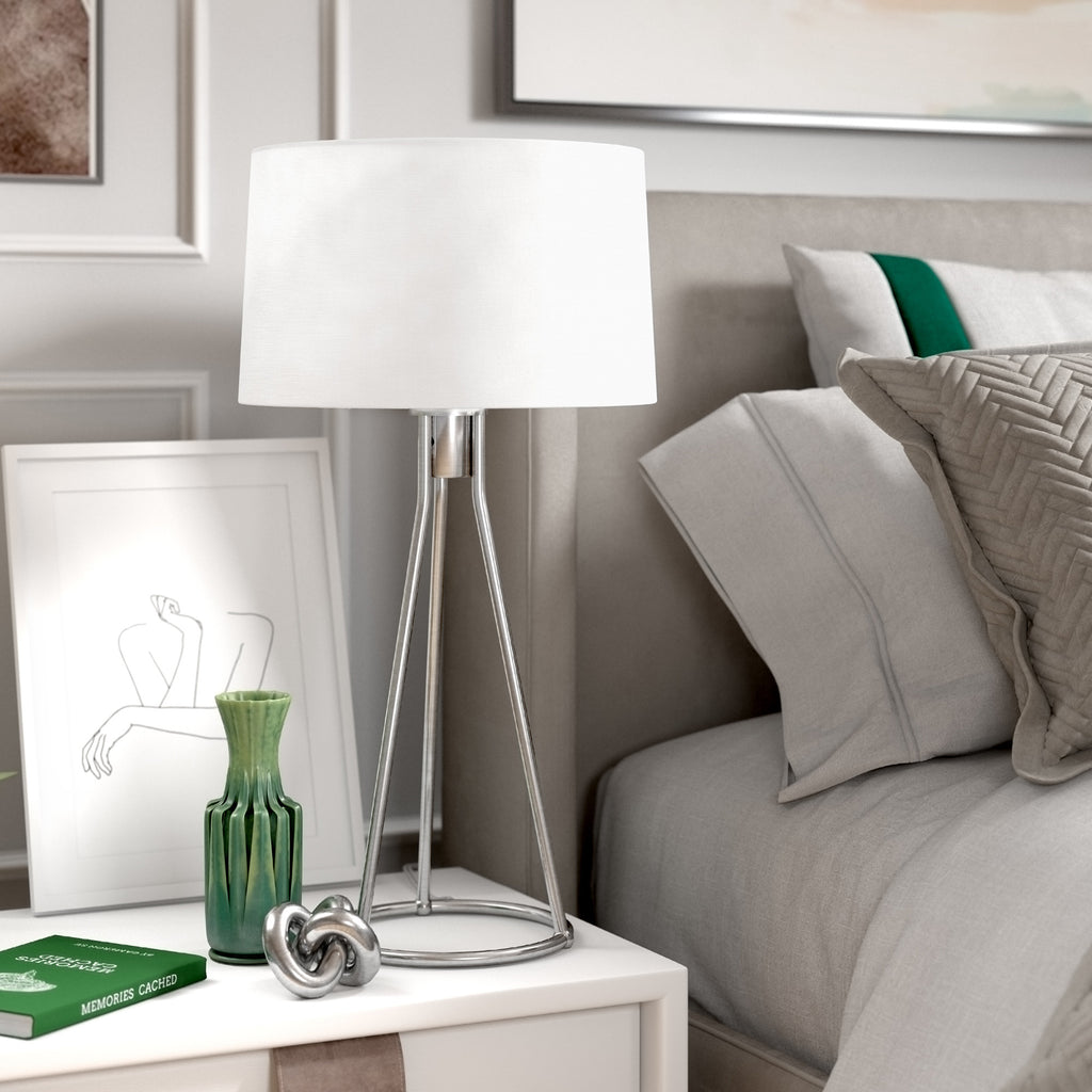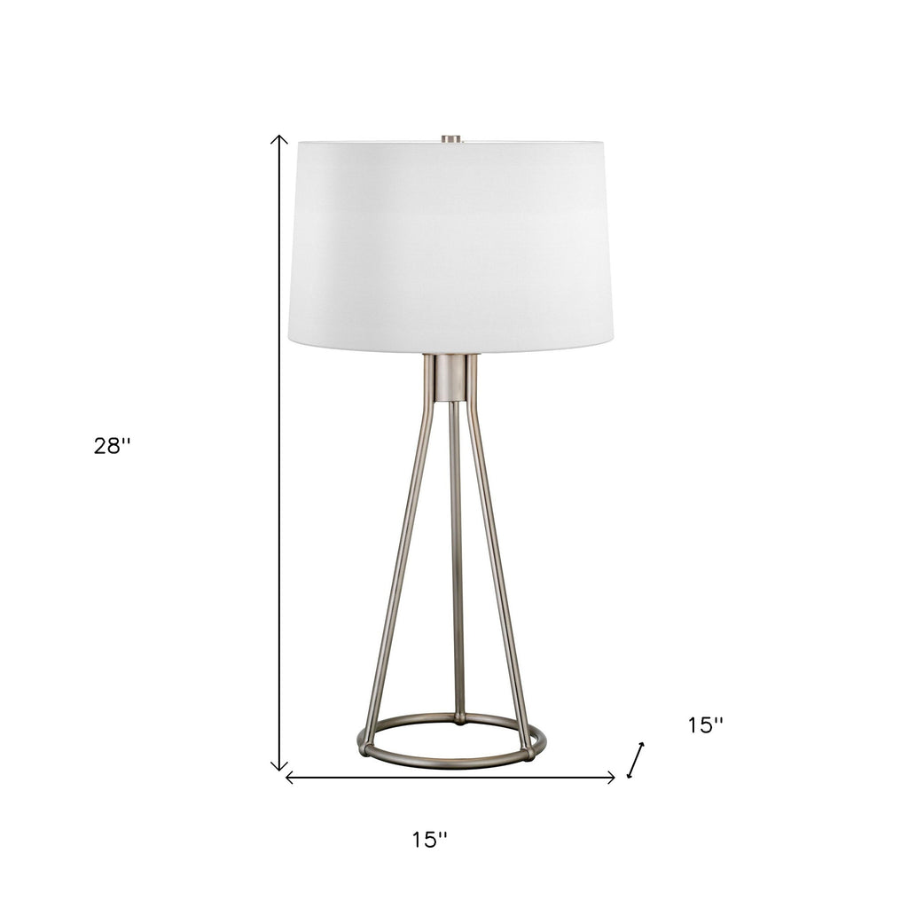 Truly a mix of design and functionality that doesn't compromise on style, this 28-inch nickel metal table lamp with white drum shade will be a great addition to your space. A gorgeous nickel metal base brings just the right amount of pizzazz to this fabulous lamp. The white drum fabric shade is a great compliment to this lamp. This standard table lamp is designed to provide general lighting to the area. Use this lamp anywhere and elevate the look of the whole space. Bring some lite and good vibes into your space with this updated and stylishly designed lamp. 28-inch H x 15-inch W x 15-inch D